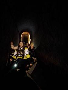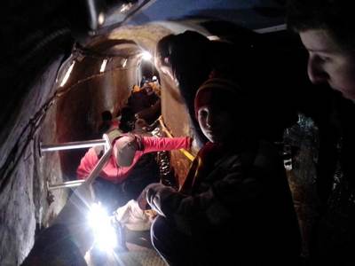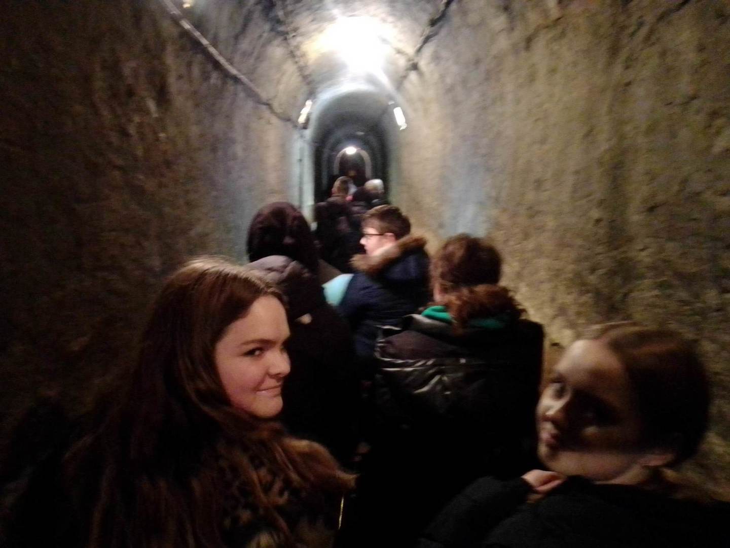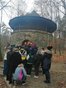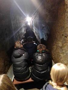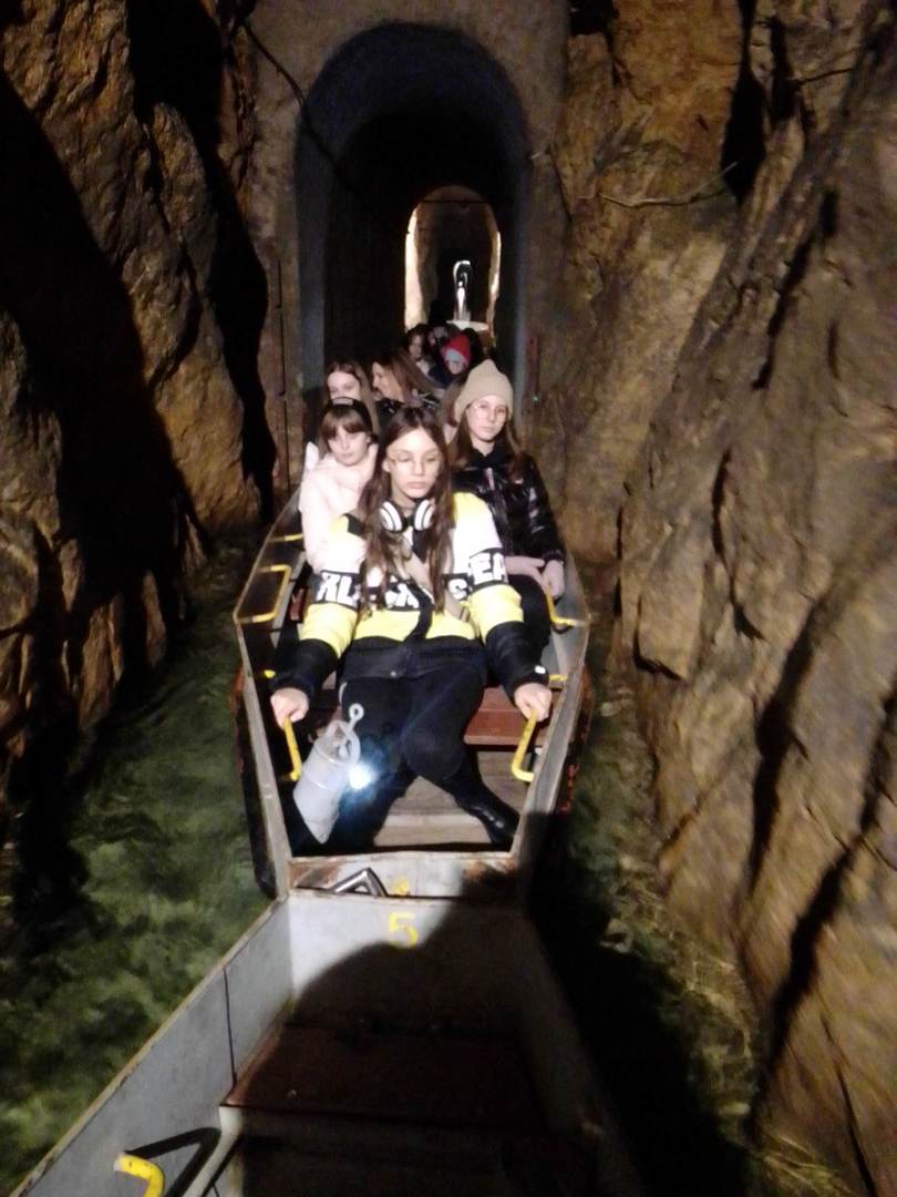 Pierwszym etapem wycieczki było zwiedzanie Sztolni Czarnego Pstrąga, znajdującej się w Tarnowskich Górach. Sztolnia Czarnego Pstrąga została wpisana w 2017 roku na listę Światowego Dziedzictwa UNESCO. Uczniowie w urokliwej scenerii pokonali łodziami 600 – metrową trasę mieszczącą się kilkadziesiąt metrów pod ziemią. Podczas wyprawy od szybu „Ewa” do szybu „Sylwester” towarzyszył nam przewodnik, który w interesujący sposób opowiadał o dawnym górnictwie. Płynąc po krystalicznej wodzie poznawaliśmy ciekawą historię powstania murowanych bram: Pamięci, Odważnych, Szczęśliwych i Leniwych. Płynięcie łódką po wodnych korytarzach kopalni było dla uczniów ciekawym doświadczeniem i sprawiło im wielką radość.