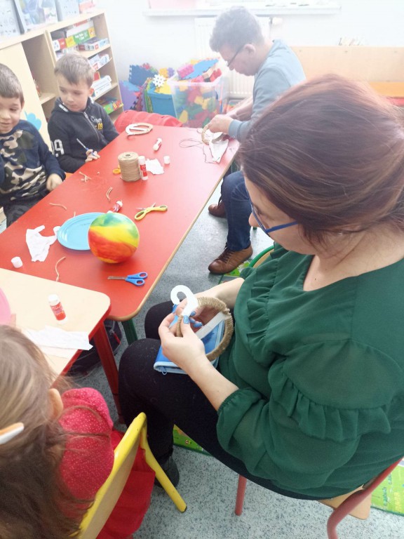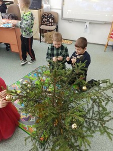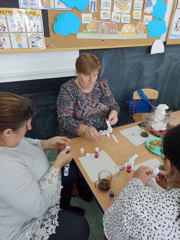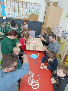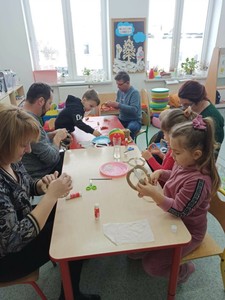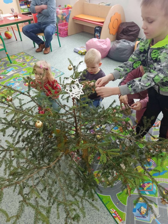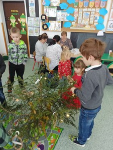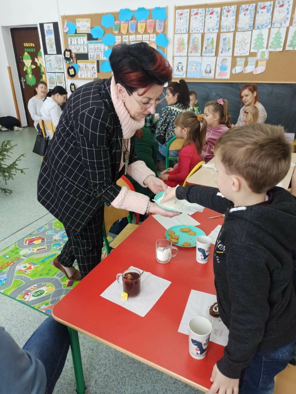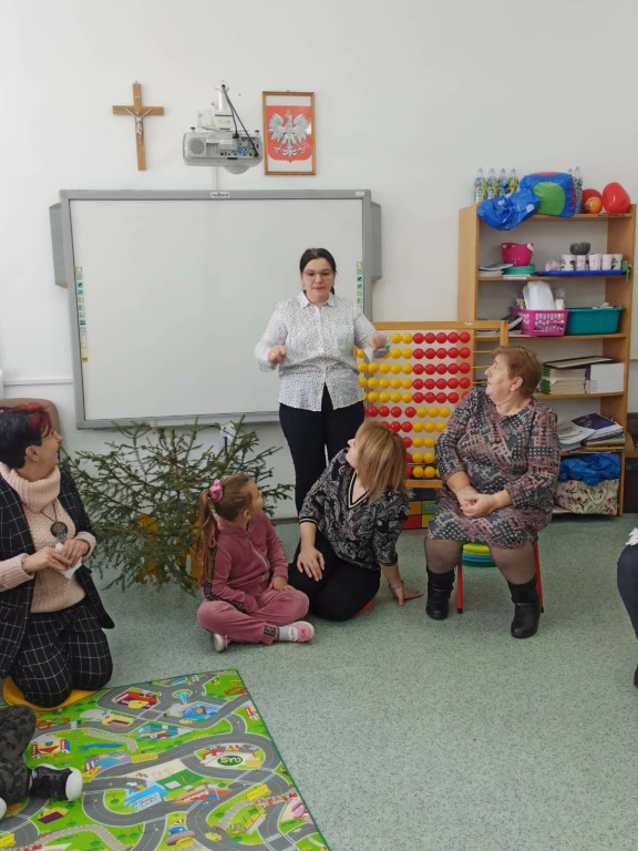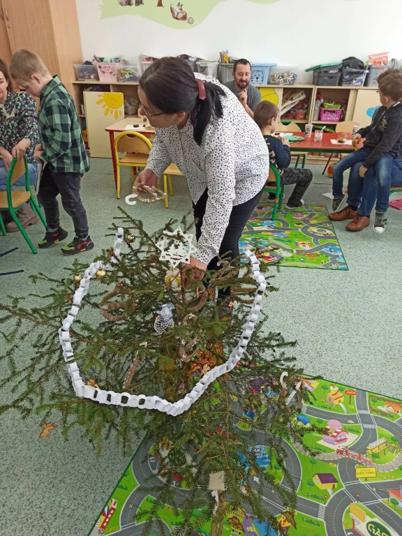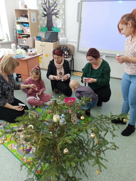 W grupie „0A” odbyły sie rodzinne warsztaty świąteczne. Uczestniczyli w nim rodzice, babcie dzieci, a także Panie z KGW w Trzebcach. Spotkanie miało na celu przybliżenie tradycji Świąt Bożego Narodzenia związanych z wykonywaniem ozdób świątecznych, wspólnych strojeniem choinki, kolędowaniem czy dzieleniem się opłatkiem. Wszyscy uczestnicy spotkali wykazali się ogromnym zaangażowaniem podczas proponowanych form aktywności. Były zagadki, zabawy muzyczno- ruchowe.. Zostały wykonane również ozdoby na choinkę.. Nie zabrakło też okazji do rozmów na temat kultywowanych w swoich domach tradycji świątecznych, przyrządzanych potraw.