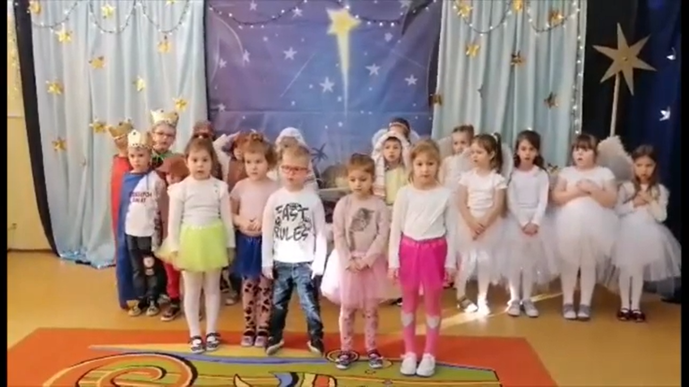 W grudniu dzieci z oddziału 5-latków z wielkim zaangażowaniem przygotowywały "Jasełka". Mali artyści prezentowali się doskonale i w pięknych strojach odegrali swoje role. Aniołowie ogłosili radosną nowinę, a do szopki przybyli Pastuszkowie oraz Trzej Królowie, którzy przynieśli Dzieciątku dary. Całej tej uroczystości towarzyszyły piękne kolędy i pastorałki. Na koniec dziecizłożyły życzenia noworoczne.