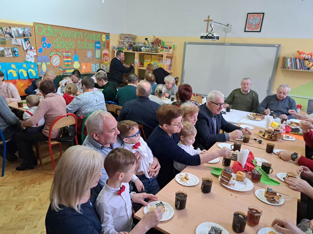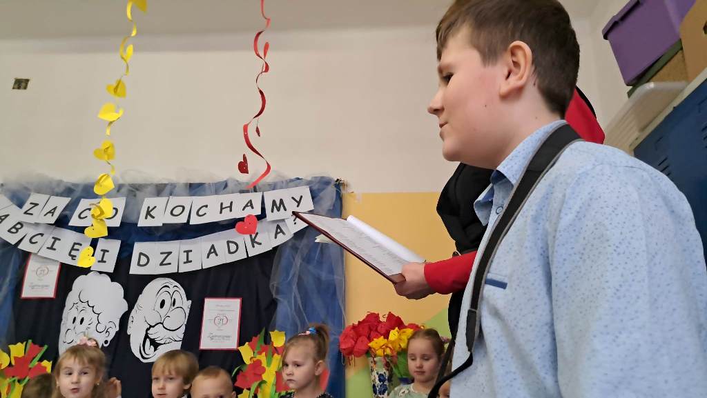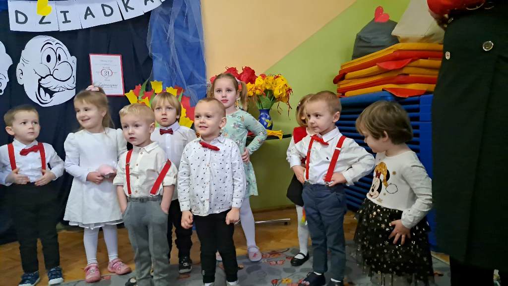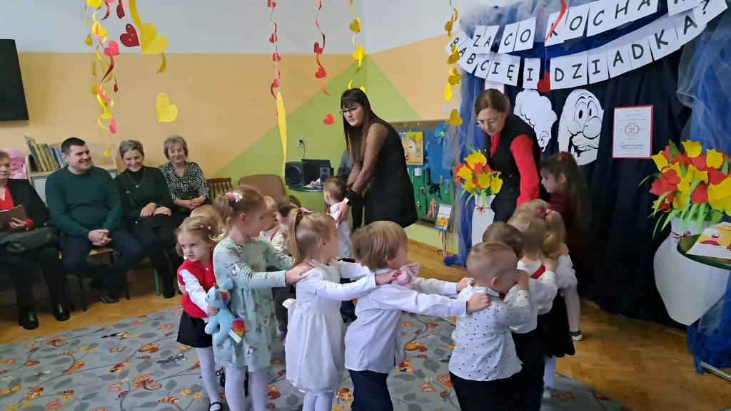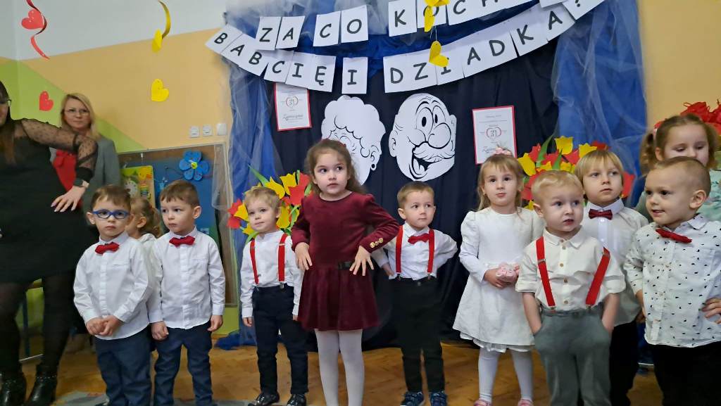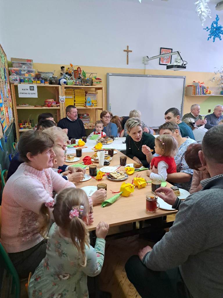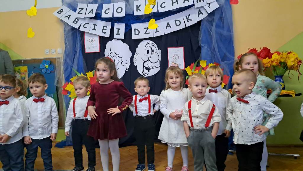 W dniu 31. lutego 2023 r. dzieci z oddziału przedszkolnego „Przyjaciele Kubusia Puchatka” przygotowały program artystyczny pod kierunkiem wychowawcy Moniki Niemczyk, logopedy Moniki Bębniarz oraz nieodzownej cioci Agnieszki Gwiazdy-Koćwin. Mali artyści z przejęciem odtworzyli swoje role, a czcigodni gości ze wzruszeniem odbierali czułe słowa kierowane pod ich adresem, a duma rozpierała ich serca, że mają tak utalentowane wnuki. Po części artystycznej obecny pan dyrektor Leszek Wróblewski oraz pani wicedyrektor Joanna Rembielak podziękowali małym artystom za przygotowanie tak pięknej uroczystości oraz złożyli serdeczne życzenia zaproszonym gościom. To był dzień pełen wrażeń, uśmiechu, radości i dumy. Wzruszające święto pozwoliło nam na wyciągnięcie wniosków, że takie spotkania są wspaniałą okazją do integracją wielu pokoleń.
