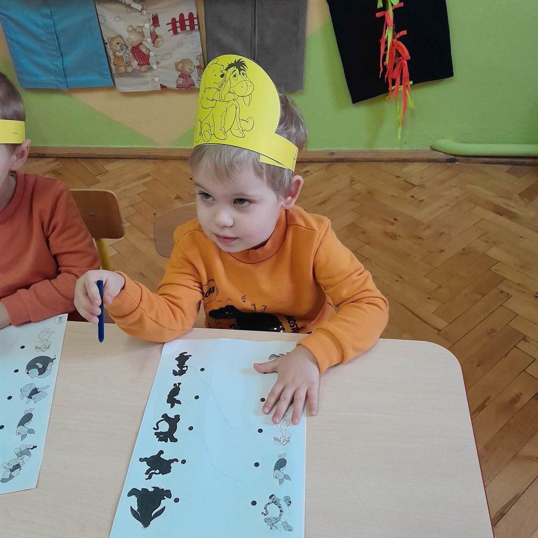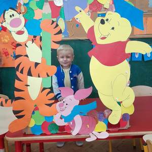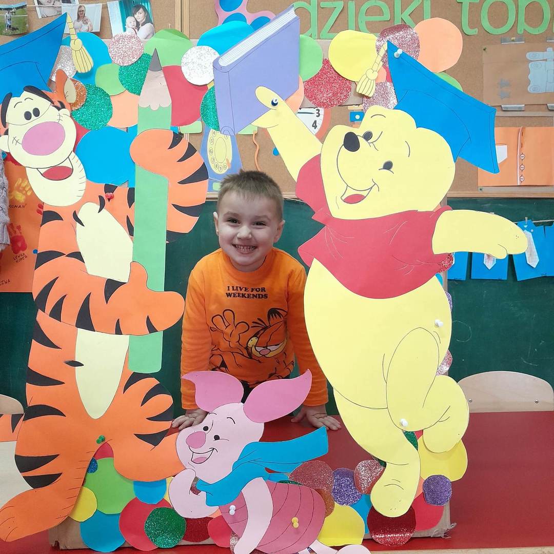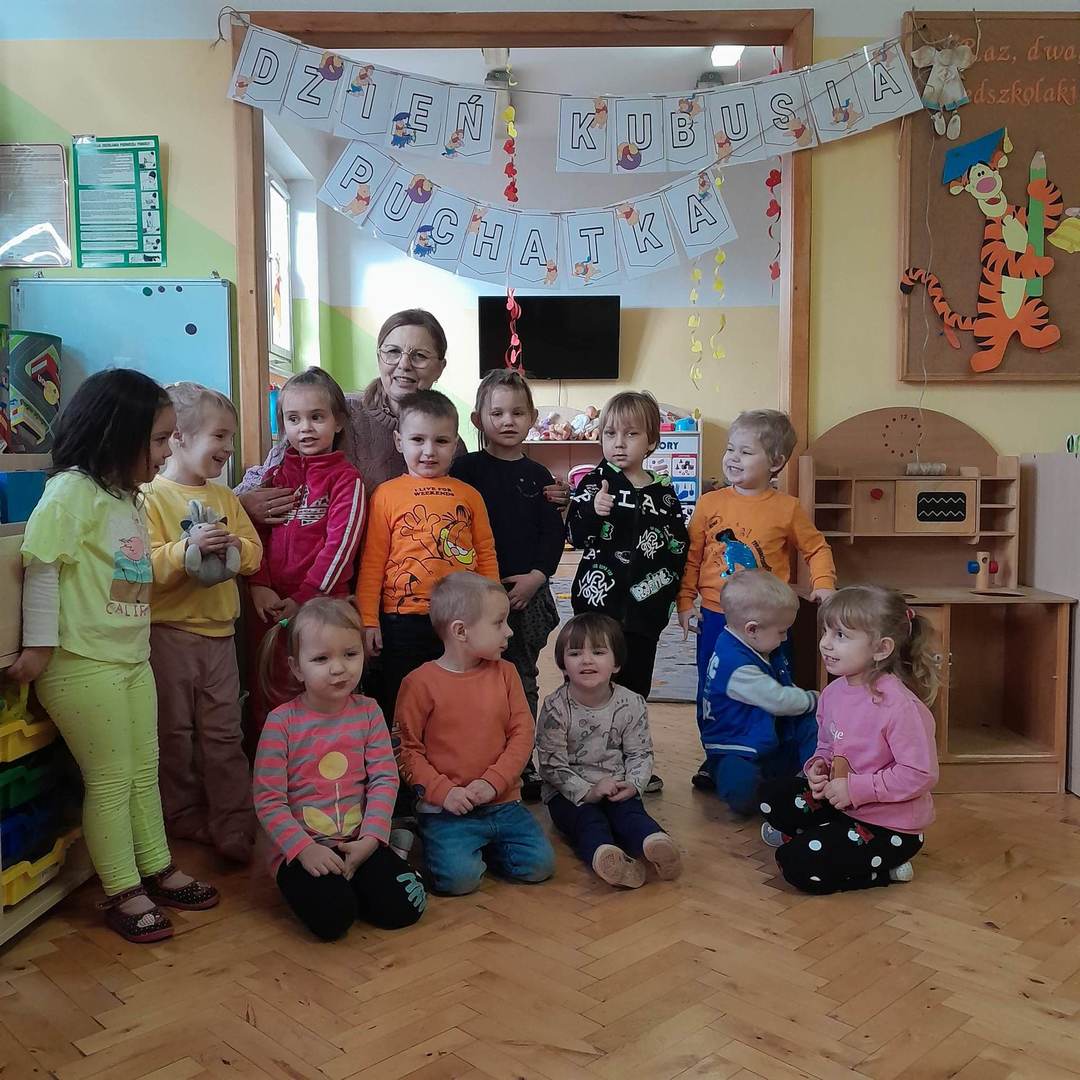 Na całym świecie urodziny Kubusia Puchatka obchodzone są 18 stycznia, dokładnie w tym dniu urodził się A.A. Milne – autor książek „Kubuś Puchatek” i „Chatka Puchatka”, które napisał dla swojego syna Krzysia. Urocze przygody poszukującego miodu Kubusia ze Stumilowego Lasu zna prawie każde dziecko. W naszej grupie to wspaniałe święto obchodzimy w lutym, tym bardziej, że przedszkolaki noszą miano Przyjaciół Kubusia Puchatka. Podczas zajęć dzieci zapoznały się z historią misia, wysłuchały fragmentu powieści o przygodach sympatycznego Kubusia i jego przyjaciół. Poza tym wykonały wiele ćwiczeń rozwijających logiczne myślenie, umiejętność wypowiadania podczas gry „Ja mam, kto ma?”, a także rozwiązywały zagadki słowno-obrazkowe oraz malowały portret Kubusia. Przedszkolaki wykonały opaski tematyczne, zrobiły sobie zdjęcia w Puchatkowej fotobudce oraz ćwiczyły artykulatory z misiem.