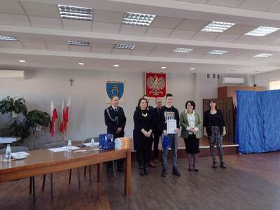 Drugi konkurs odbył się w GOKiS i dotyczył wiedzy pożarniczej, hasło konkursu: „Młodzież zapobiega pożarom”. Turniej został przeprowadzony w celu poszerzaniu znajomości przepisów przeciwpożarowych, zasad postępowania na wypadek pożaru oraz historii i tradycji ruchu strażackiego. Uczniowie biorący udział w tym konkursie to: Wiktoria Balińska, Klaudia Goleniewska, Klaudia Moryń, Natalia Kucharska, Michał Krawczyk i Sebastian Stalka - wszyscy z klasy 8. Jesteśmy niezmiernie dumni z naszych uczestników, ponieważ byli najlepsi, zajęli pierwsze trzy miejsca w swojej kategorii wiekowej, tj, 1- miejsce Michał Krawczyk, 2- miejsce Klaudia Goleniewska, 3 – miejsce Damian Stalka. Brawo!