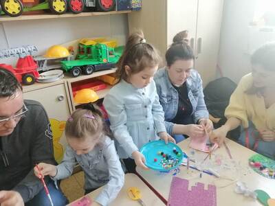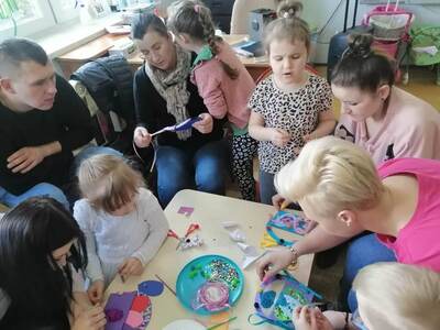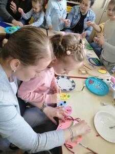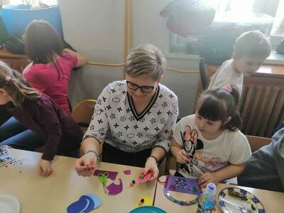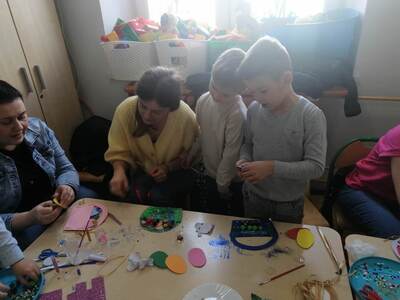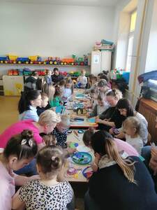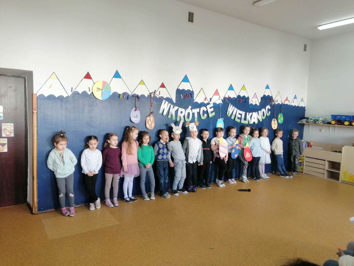 Wielkanoc zbliża się wielkimi krokami, dlatego 4 kwietnia w naszym przedszkolu odbyło się przedstawienie wielkanocne w wykonaniu dzieci z grupy 5-latków. Na przedstawieniu gościliśmy rodziców i Panią Wicedyrektor. Przedstawienie podobało się wszystkim przybyłym gościom, a mali artyści zostali nagrodzeni gromkimi brawami. Tego rodzaju przedsięwzięcia są dobrą okazją do kultywowania naszych tradycji, ale także okazją dla dzieci do wykazania się inwencją twórczą i odwagą w publicznych wystąpieniach. Po przedstawieniu odbyły się warsztaty plastyczne. Przedszkolaki wspólnie z rodzicami mogły wykonać koszyczek z kolorowymi pisankami. Dodatkową atrakcją była przygotowana przez dzieci niespodzianka - własnoręcznie wykonana babka drożdżowa.
