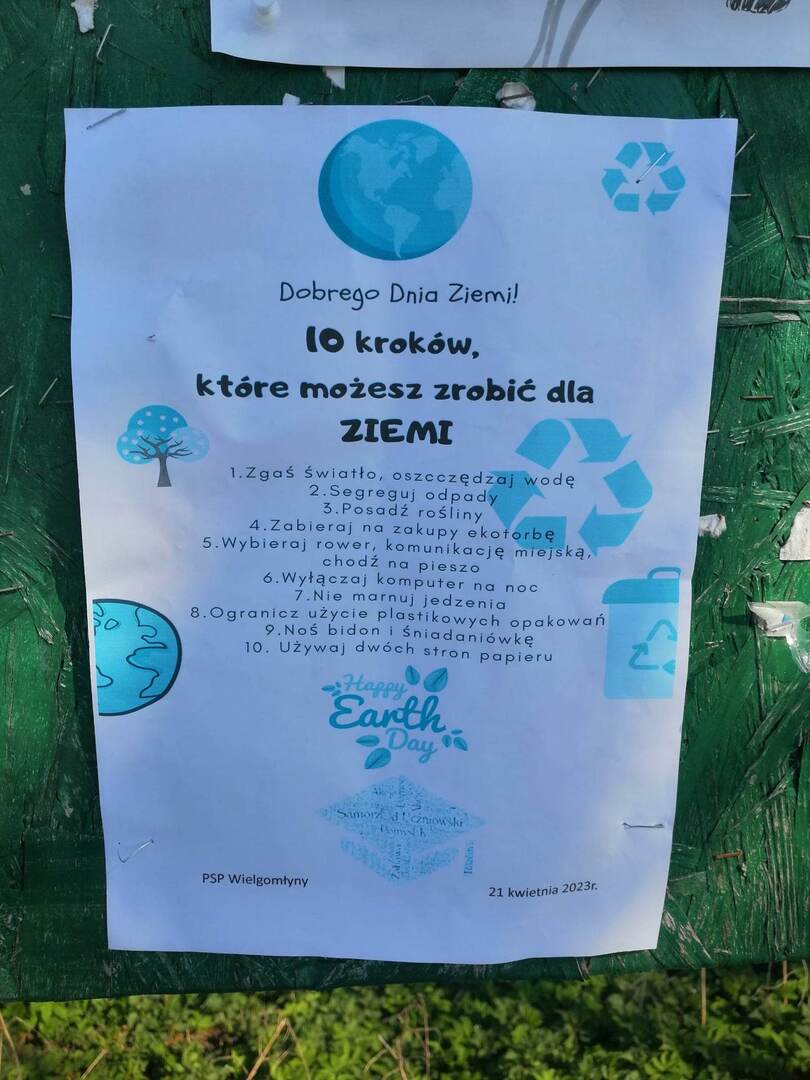 Dnia 21 kwietnia wzięliśmy udział w akcji#SprzątamydlaPolski, zorganizowanej przez Stowarzyszenie „Dla Polski”. Patronat nad przedsięwzięciem objęli m.in. Prezes Rady Ministrów oraz Minister Edukacji i Nauki. Celem akcji jest troska o środowisko naturalne w swojej najbliższej okolicy, ale także kształtowanie postawy odpowiedzialności za wspólne dobro. Uczniowie oprócz zbierania śmieci, również roznosili ulotki z informacją: 10 kroków, które możesz zrobić dla Ziemi 😊.