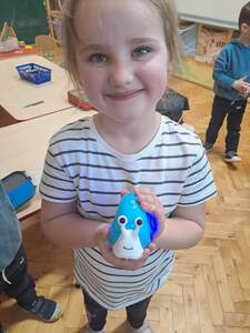 W dniu 17 kwietnia przedszkolaki z grupy 3-latków miały zajęcia z robotem Qobo, który posiada 3 tryby dostosowane do wieku rozwojowego dzieci. Pierwsze kroki są bardzo proste, niczym składanie dużych kolorowych puzzli. Uruchamianie robota jest również bardzo proste i intuicyjne za pomocą jednego guzika. Bardzo ważne jest, aby pozwolić dzieciom eksperymentować i rozwiązywać samodzielnie zadania, co pozwoli budować ich pewność siebie i kreatywność.