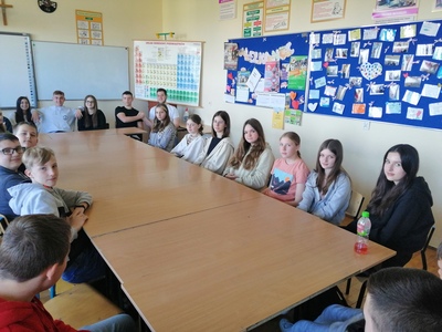 Głównym celem spotkania była pomoc klasie 8 naszej szkoły w wyborze dalszej drogi kształcenia. Na co warto zwrócić szczególną uwagę wybierając szkołę średnią oraz jaka "tak naprawdę" panuje atmosfera w tychże szkołach. Mamy nadzieję, że dzięki temu spotkaniu, choć po części udało się nam rozwiać pewne wątpliwości.