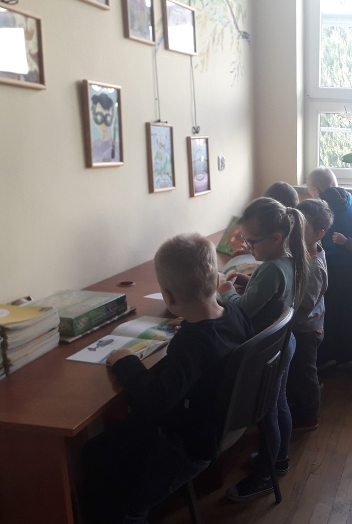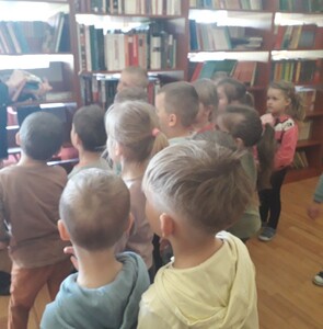 8 maja bibliotekarze obchodzili swoje święto - Dzień Bibliotekarza i Bibliotek. Praca bibliotekarza to nie tylko, jak myślą niektórzy, przesiadywanie między zakurzonymi książkami, to także misja, której celem jest docieranie do jak największej liczby miłośników książek, a także zachęcanie do czytania i sięgania po piękną literaturę. Dlatego też czterolatki odwiedziły ze swoją wychowawczynią szkolną bibliotekę. Z zainteresowaniem obejrzały inscenizację wierszy Jana Brzechwy przygotowaną przez kolegów z klasy 4, wysłuchały wesołych piosenek i zatańczyły taniec do utworu „Na wyspach Bergamutach”. Dzieci również po raz pierwszy miały możliwość wypożyczenia wybranej przez siebie książki. Największym powodzeniem cieszyły się lektury związane z tematyką budownictwa, kosmosu, motoryzacji i – oczywiście – bajki. „Bajkusie” wiedzą, że biblioteka to wspaniałe, magiczne miejsce...
