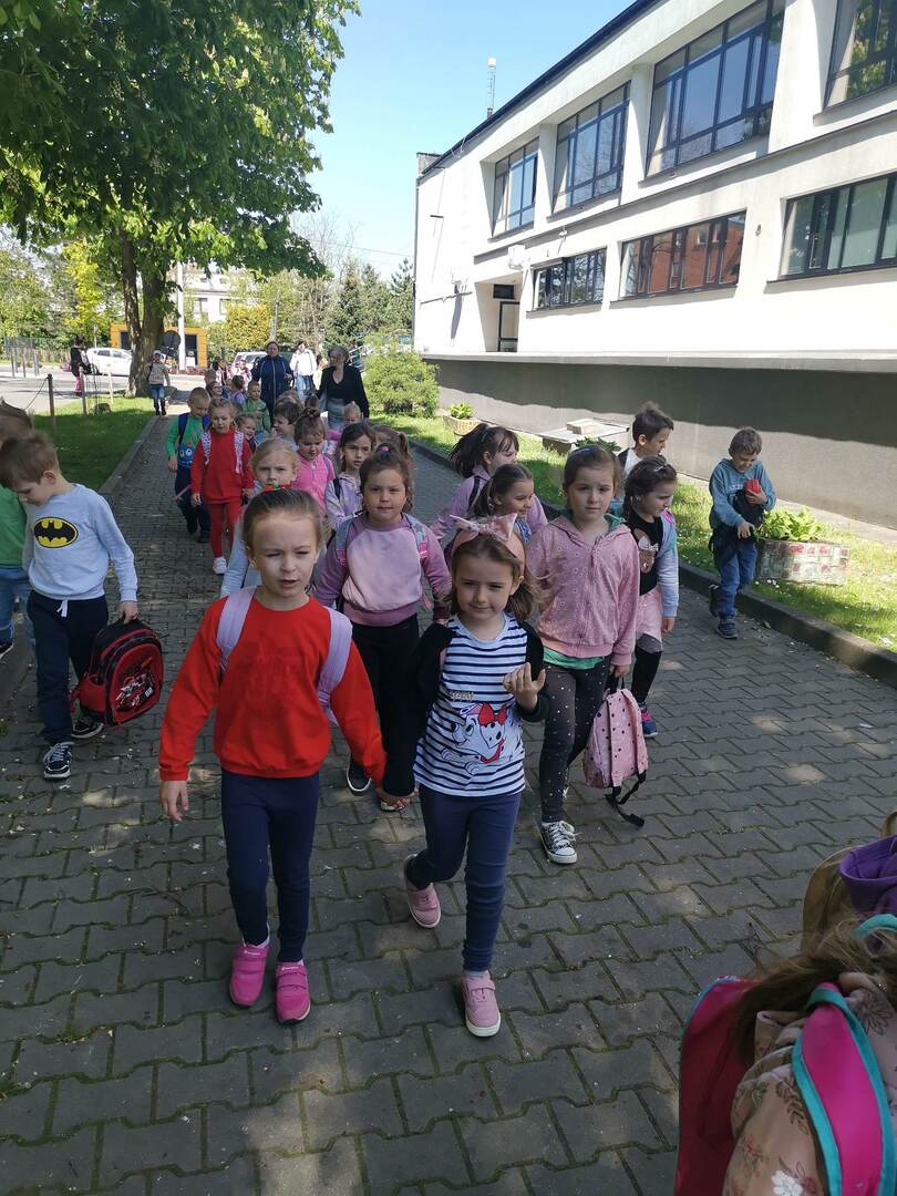W środę 10 maja dzieci z oddziałów przedszkolnych oraz klas „0” pojechały na wycieczkę do kina do Miejskiego Domu Kultury w Radomsku. Przedszkolaki miały okazję obejrzeć film animowany „Uratuj drzewo”. Bajka ta miała walor edukacyjny – bowiem przybliżyła dzieciom tematykę ekologii i życia w zgodzie z naturą. Opowiadała o współczesnym problemie, jakim jest uzależnienie od tabletów i internetu, co skutkuje zaniedbaniem i oddaleniem od przyrody. Film swoją fabułą i akcją wywarł duże wrażenie na małych widzach.
