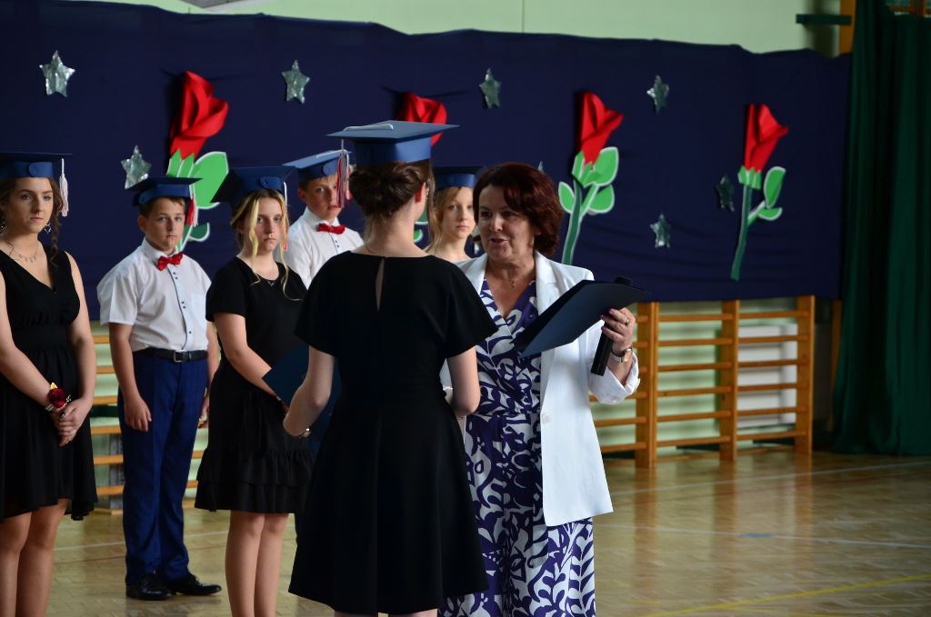 Po ślubowaniu Absolwentów dyrektor szkoły Pan Leszek Wróblewski i Pani wicedyrektor Joanna Rembielak wręczyli uczniom nagrody i listy gratulacyjne dla rodziców oraz dyplomy absolwenta. Nagrody ufundowała Rada Rodziców, której serdecznie dziękujemy.