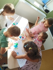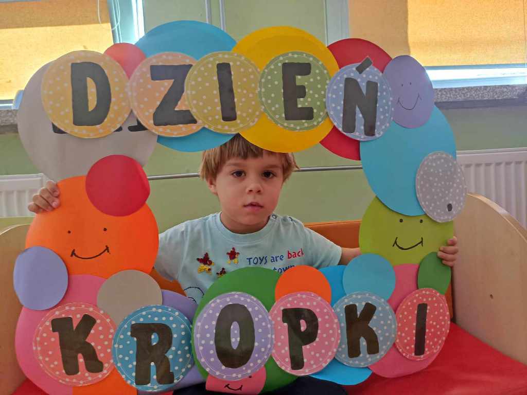 Tego dnia mnóstwo kolorowych krop, kropek, kropeczek zagościło w naszych oddziałach przedszkolnych. Pomysłów na „kropkowe” zabawy było wiele. Każda grupa w wyjątkowy sposób spędziła ten dzień. Zabawy rozpoczęły się od zapoznania dzieci z opowiadaniem o małej Vashti, dziewczynki, która dzięki małej kropce odszukała w sobie „coś” wyjątkowego. Wychowawcy połączyli zabawę z edukacją- było wiele ćwiczeń rozwijających koordynację wzrokowo-ruchową, wykorzystujących metodę integracji sensorycznej, terapii ręki, zabaw z zakresu edukacji matematycznej i polonistycznej. Nie obyło się również bez kropkowej fotobudki.