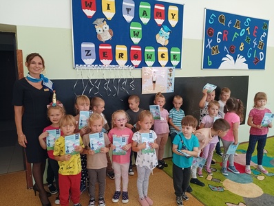 W piątek uczniów klasy I oraz zerówki odwiedziła stewardessa pani Anna Trzeciak, na co dzień pracująca w Polskich Liniach Lotniczych LOT. Pani Ania jest absolwentką naszej szkoły. Celem spotkana było zapoznanie dzieci z zawodem stewardessy oraz jego specyfiką.