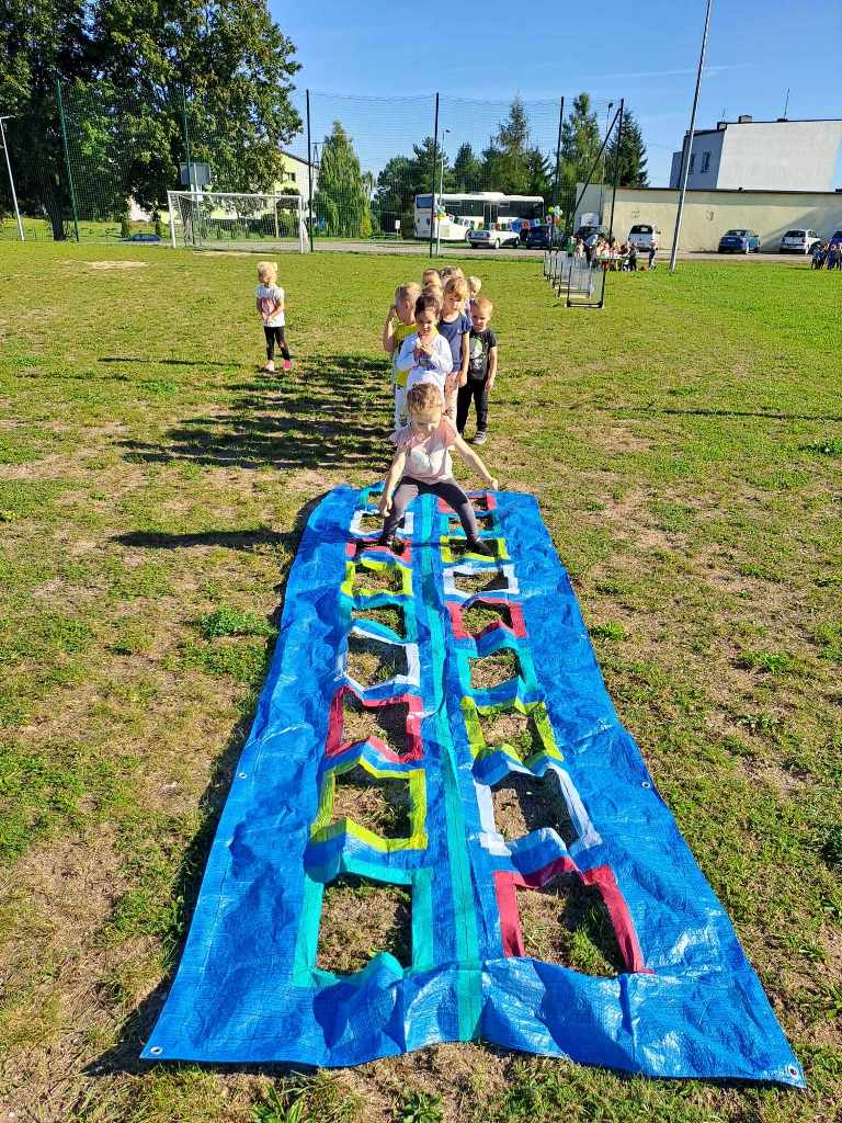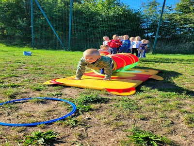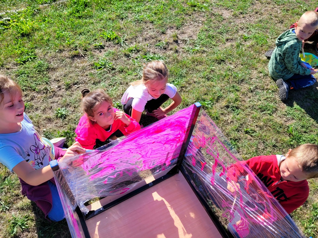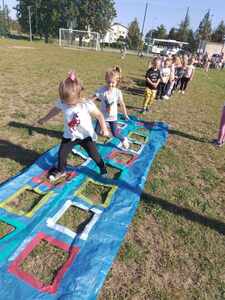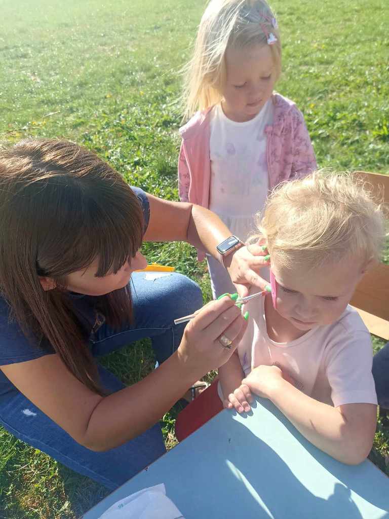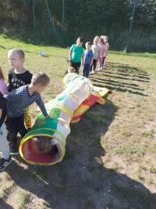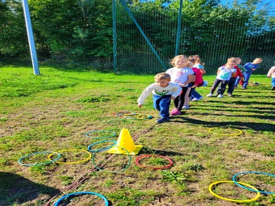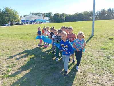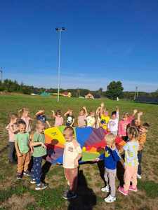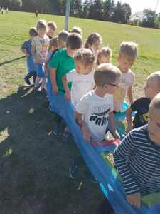 Z tej okazji dla dzieci z wszystkich oddziałów przedszkolnych zorganizowane zostały niezapomniane atrakcje. Wesołe zabawy odbywały się na świeżym powietrzu. Dużym zainteresowaniem cieszyło się malowanie twarzy, co wprowadziło naszych wychowanków w bajkową atmosferę. Dzieci miały także do pokonania tor przeszkód i bawiły się z matą edukacyjną. Dzięki temu ćwiczyły ogólną sprawność fizyczną wspaniale się bawiąc. Przedszkolaki integrowały się i pobudzały wyobraźnię poprzez zabawy z chustą animacyjną Klanza, a także bawiły się kolorami poprzez malowanie niepowtarzalnych wspólnych prac farbami. Wszystkie aktywności zwieńczone zostały puszczaniem baniek mydlanych, co dzieci uwielbiają.