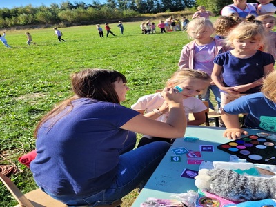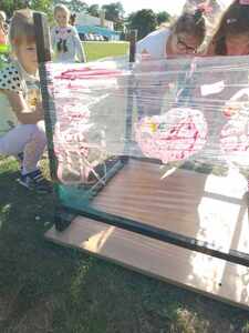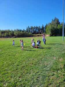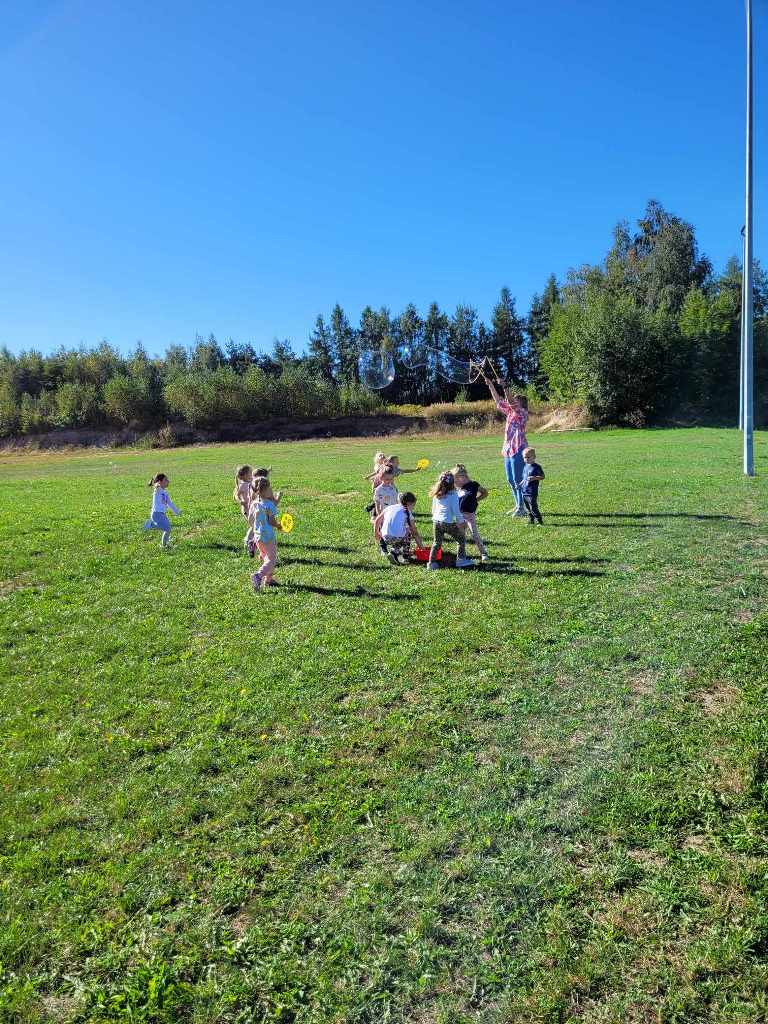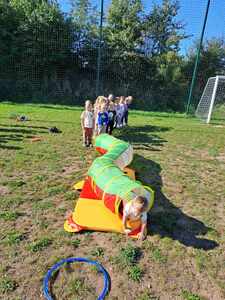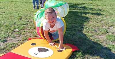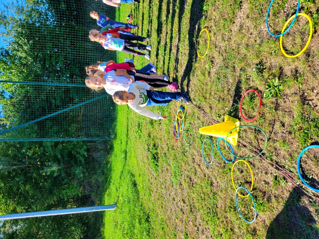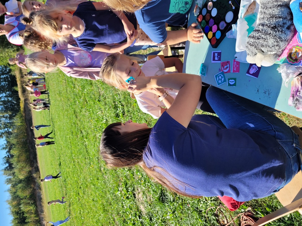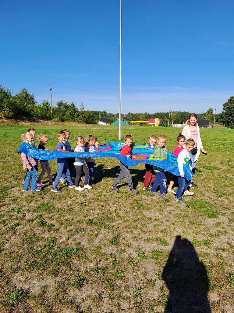 Z tej okazji dla dzieci z wszystkich oddziałów przedszkolnych zorganizowane zostały niezapomniane atrakcje. Wesołe zabawy odbywały się na świeżym powietrzu. Dużym zainteresowaniem cieszyło się malowanie twarzy, co wprowadziło naszych wychowanków w bajkową atmosferę. Dzieci miały także do pokonania tor przeszkód i bawiły się z matą edukacyjną. Dzięki temu ćwiczyły ogólną sprawność fizyczną wspaniale się bawiąc. Przedszkolaki integrowały się i pobudzały wyobraźnię poprzez zabawy z chustą animacyjną Klanza, a także bawiły się kolorami poprzez malowanie niepowtarzalnych wspólnych prac farbami. Wszystkie aktywności zwieńczone zostały puszczaniem baniek mydlanych, co dzieci uwielbiają.