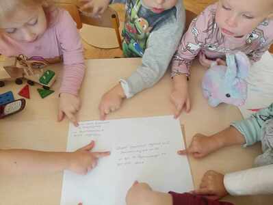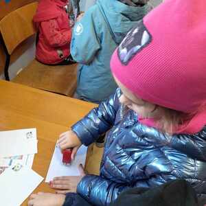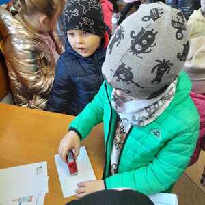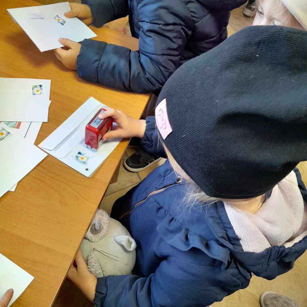 Po tychże działaniach dzieci wybrały się na wycieczkę do Urzędu Pocztowego w Wielgomłynach, aby utrwalić zdobyte w przedszkolu wiadomości. Przedszkolaki mogły zaobserwować pracę urzędnika pocztowego, poznały różne rodzaje listów, wzbogaciły słownictwo o zwroty: awizo, przesyłka. Najwięcej emocji wzbudziło jednak naklejanie znaczków pocztowych na kopertach, przybijanie pieczątki „priorytet” i wysyłanie listów przygotowanych przez dzieci. Kartka z życzeniami do Polskiego Związku Emerytów, Rencistów i Inwalidów w Radomsku z okazji nadchodzącego Dnia Seniora oraz kartka z pozdrowieniami do zaprzyjaźnionego przedszkola w Łodzi na pewno ucieszą adresatów.