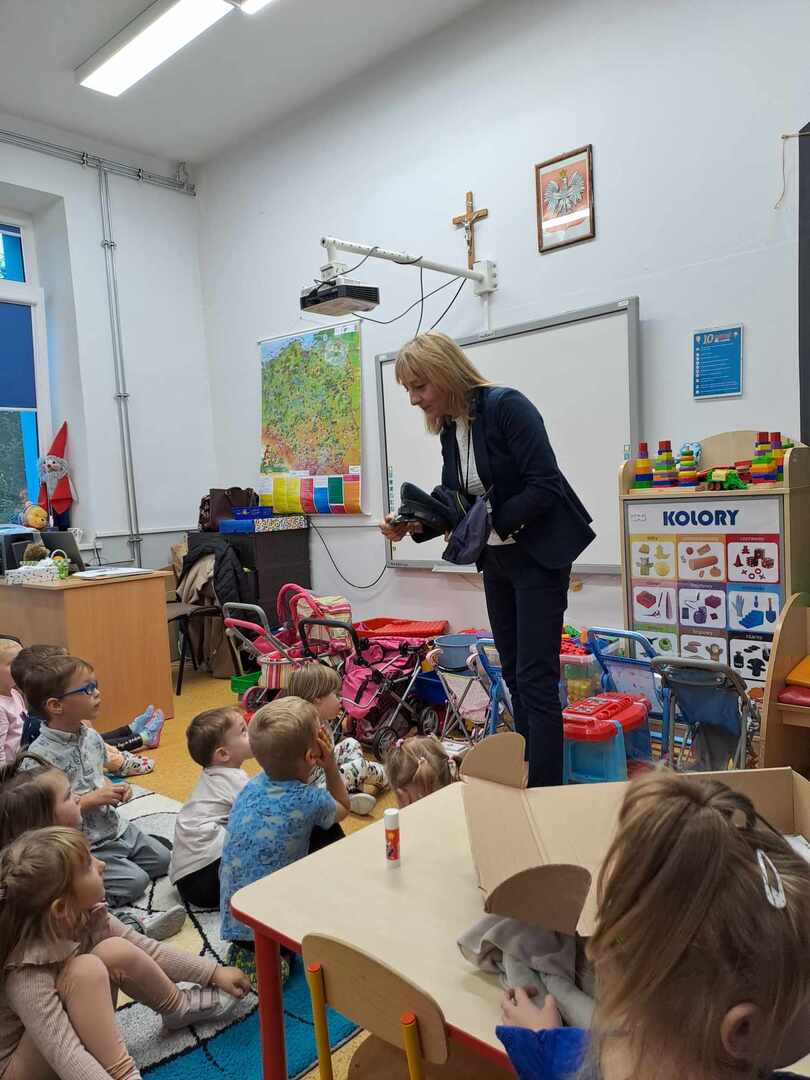 Dzieci miały możliwość przyjrzeć się pracownikowi poczty z bliska i utrwalić zdobyte w przedszkolu wiadomości na temat instytucji użyteczności publicznej. Poza tym mogły uświadomić sobie, jak wielkie znaczenie ma ten urząd w życiu codziennym. Przedszkolaki poznały różne rodzaje listów: zwykły, polecony, ekspresowy, lotniczy, kartki, telegramy, wzbogaciły słownictwo w zwroty: awizo, przesyłka, nadawca, adresat. Z pomocą pani Sylwii zaadresowały kartkę, przykleiły znaczek w odpowiednim miejscu, zakleiły paczkę i zaadresowały.