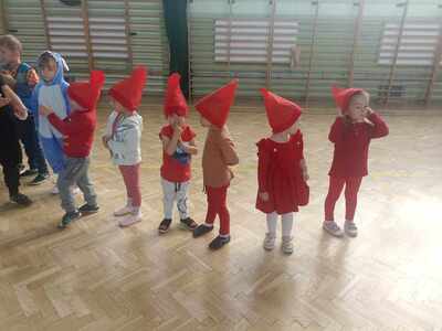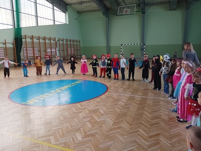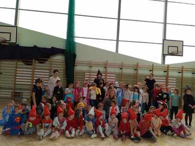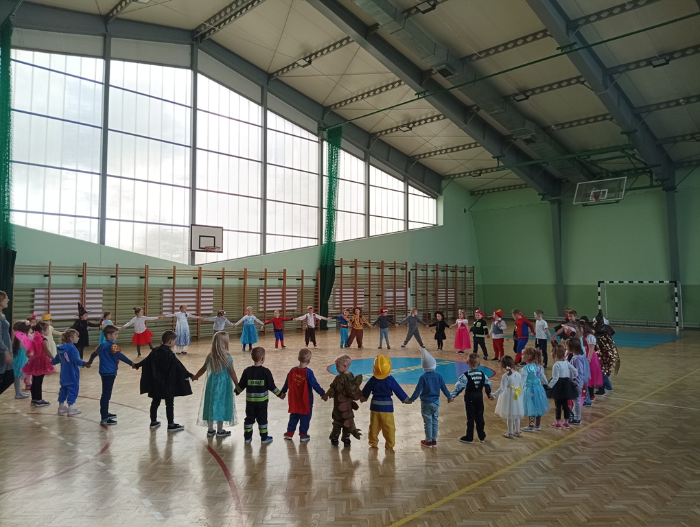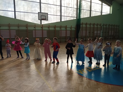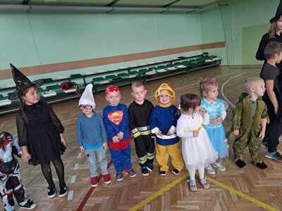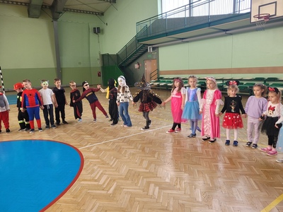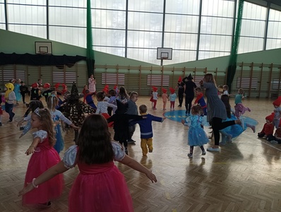 Dzieci ze wszystkich oddziałów przedszkolnych wzięły udział w Balu Postaci z Bajek, który odbył się na hali sportowej. Przedszkolaki wspólnie bawiły się przy melodiach ulubionych piosenek. Rozpoznawały głosy postaci z bajek, naśladowały swoich ulubionych bohaterów, brały udział w zabawach sportowych wg Metody Ruchu Rozwijającego W. Sherborne.