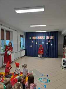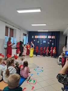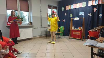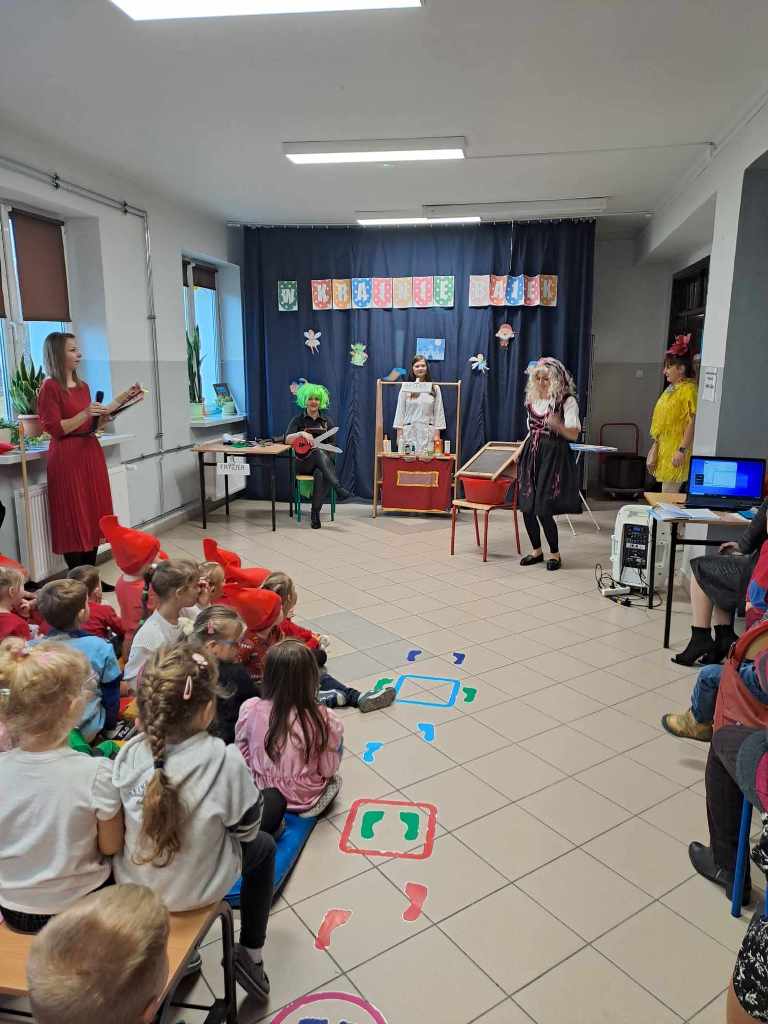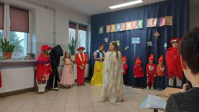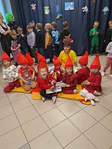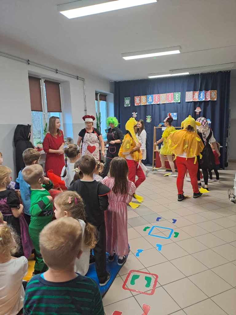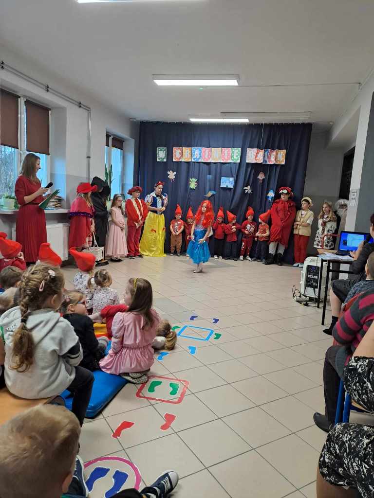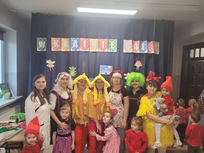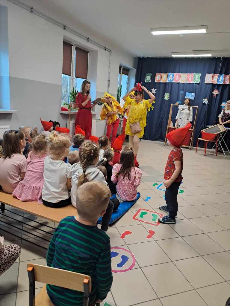 22 listopada w ramach podziękowania Seniorom za zaangażowanie w życie przedszkolaków zorganizowane zostało uroczyste podsumowanie Tygodnia Czytania Bajek. Towarzyszył temu występ artystyczny przedszkolaków, którzy z wielkim entuzjazmem zaśpiewali i zainscenizowali piosenkę pt. „Bajeczki”. Uczniowie klas starszych zaprezentowali się w rolach postaci bajkowych, co wprowadziło w iście magiczną atmosferę. Na naszej przedszkolnej scenie mogliśmy także zobaczyć wyjątkową inscenizację wiersza Jana Brzechwy pt. „Kaczka Dziwaczka” w wykonaniu rodziców dzieci.