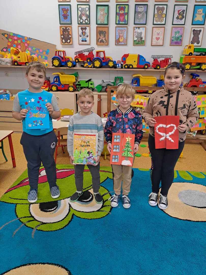 Uczestnicy świątecznego konkursu to dzieci z oddziałów przedszkolnych i klas I-III. Gratulujemy wszystkim uczestnikom konkursu za przepięknie wykonane prace, w których dzieci wykazały się ogromną kreatywnością, włożyły w nie wiele wysiłku, a także pochwaliły się znajomością tradycji i zwyczajów Bożonarodzeniowych. W związku z tym, iż wszystkie prace konkursowe są tak piękne i tak różnorodne, komisja konkursowa, w składzie: p. Emila Chmielewska, p. Elżbieta Olczyk, p. Anna Karczemska, postanowiła przyznać wszystkim uczestnikom nagrody książkowe oraz pamiątkowe dyplomy.