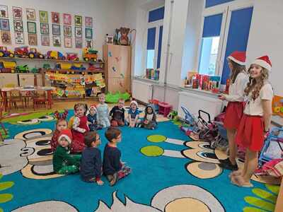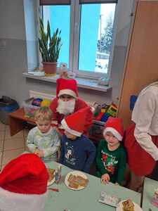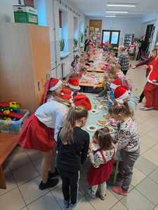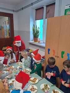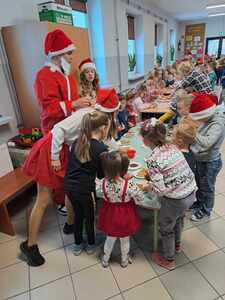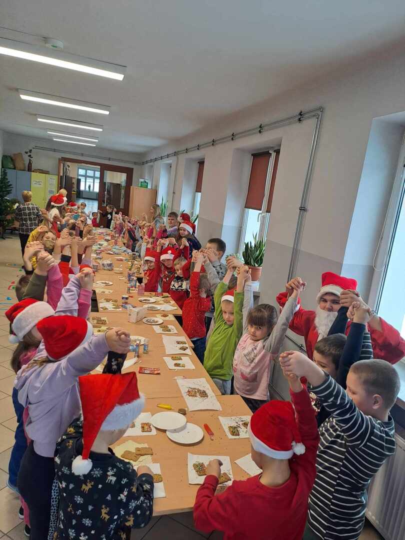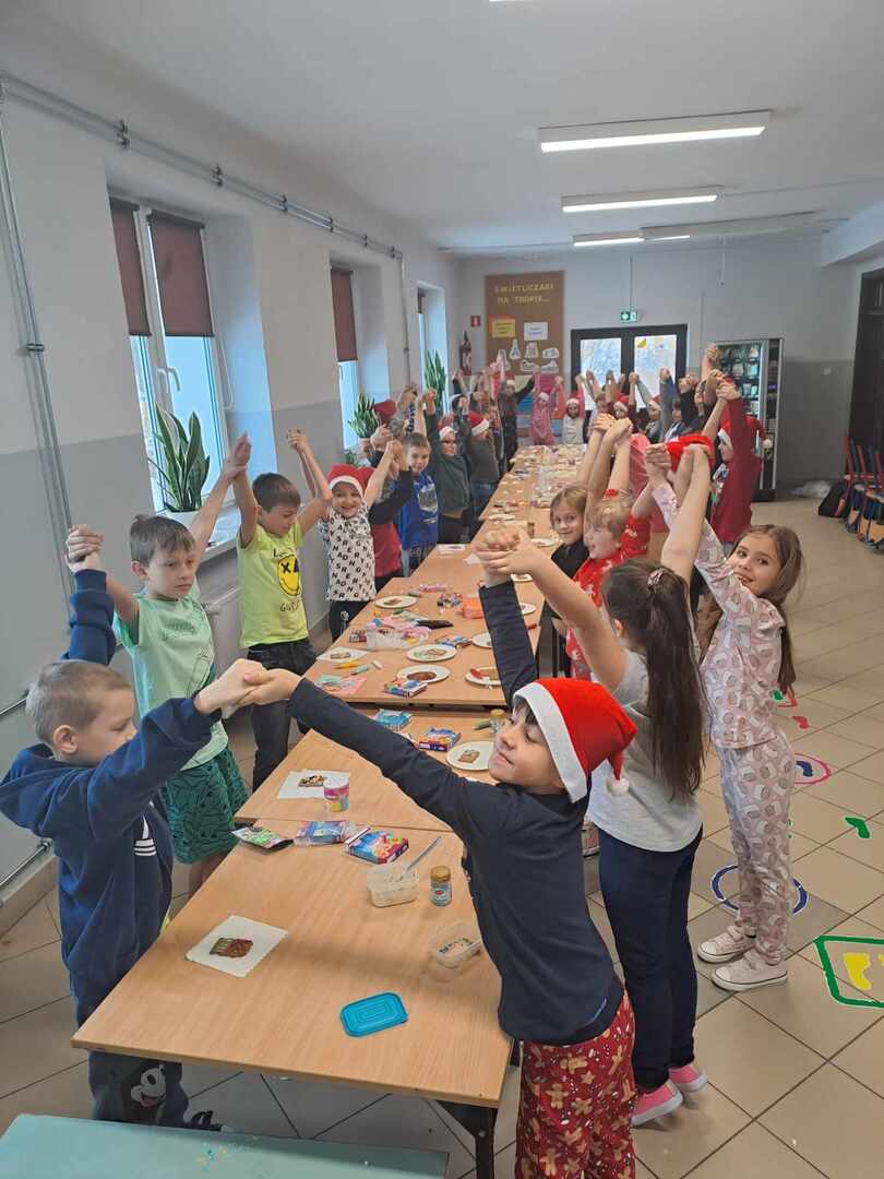 Do wspólnego celebrowania Dnia Piżamy został zaproszony również szkolny święty Mikołaj oraz jego Śnieżynki. Chętnie przyłączyli się także uczniowie z zajęć świetlicowych, wykonując z wychowawcami świetlicy piękne kartki świąteczne z aniołami, które zostaną wysłane do Fundacji „Gdy liczy się czas”. Tak naprawdę wystarczy niewiele, mały gest, uśmiech i odrobina empatii, aby świat stał się lepszy. Dzisiejszy dzień wprowadził nas wszystkich w niezwykłą atmosferę Bożego Narodzenia.