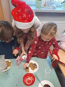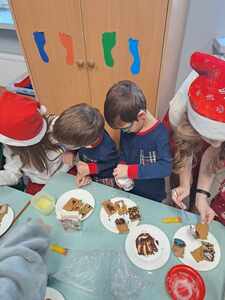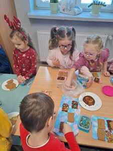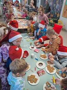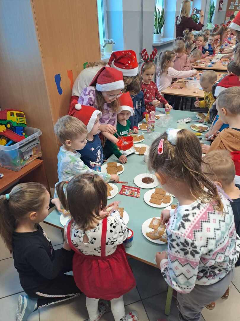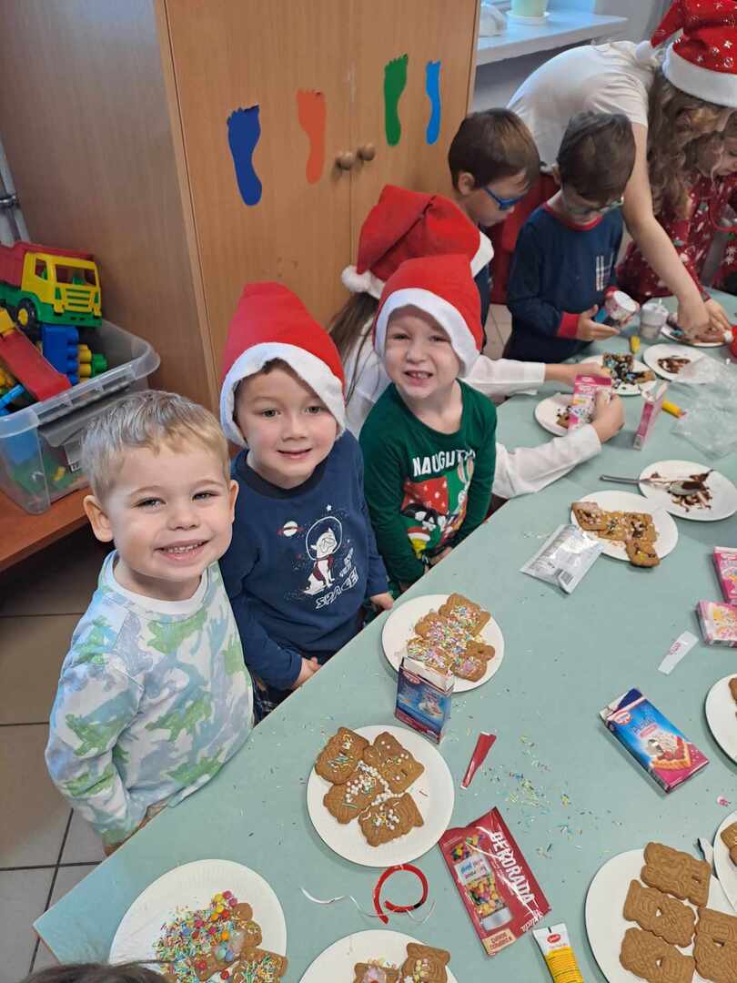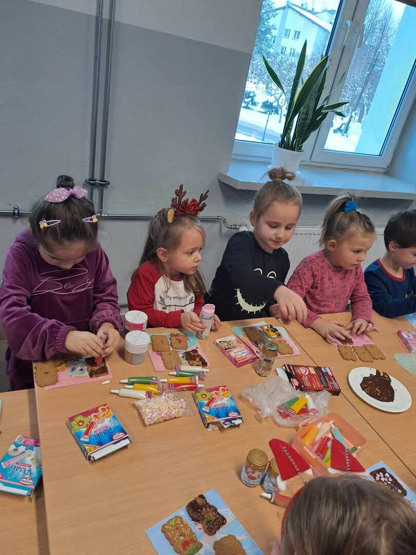 W tym roku w naszej szkole wyjątkowo w dniu 6 grudnia odbyły się warsztaty piernikowe z okazji Dnia Piżamy. Dzieci z oddziałów przedszkolnych i klas I-III zebrały się na świetlicy szkolnej, aby wspólnie ozdabiać korzenne ciasteczka za pomocą lukru, czekolady i małych cukiereczków. Tego dnia przedszkolaki i starsi uczniowie ubrali się celowo w piżamy oraz utworzyli łańcuch serc –trzymając się za ręce, aby solidaryzować się z dziećmi onkologicznie chorymi. Dzień świętego Mikołaja nie był również wybrany przypadkowo, gdyż dzieci właśnie tego dnia chciały świętować wraz ze swoimi chorymi rówieśnikami, którzy przebywają na co dzień w szpitalu, a ich codziennym ubrankiem jest piżama. Warsztaty okazały się wspaniałym pomysłem, ponieważ zaangażowały społeczność szkolną do akcji „I ty możesz zostać aniołem”.
