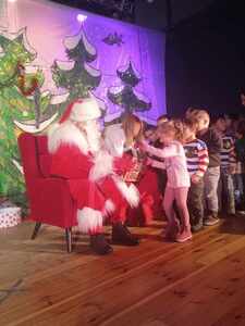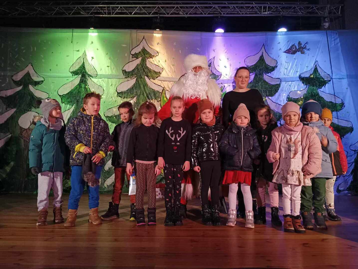 Pierwszy śnieg przykrył las….wszyscy układają się do długiego zimowego snu. Tylko Krasnal ma mnóstwo pracy. Musi przygotować prezenty dla wszystkich Dzieci z okazji zbliżających się świąt. Do dzieci przyjdzie święty Mikołaj. Leśną przedświąteczną ciszę zakłóci drwal, który chce wyciąć najpiękniejsze drzewko. Choinka błaga o litość, co przeraża drwala. Takie sceny spektaklu powitały przedszkolaków w MDK w Przedborzu. Dzieci z zachwytem obejrzały przygody Choinki, Krasnala, Muchomorka, Pajaca, Misia Mruczanko oraz Rokicia. Po przedstawieniu można było zrobić sobie zdjęcie ze św. Mikołajem oraz otrzymać prezenty przygotowane przez rodziców.