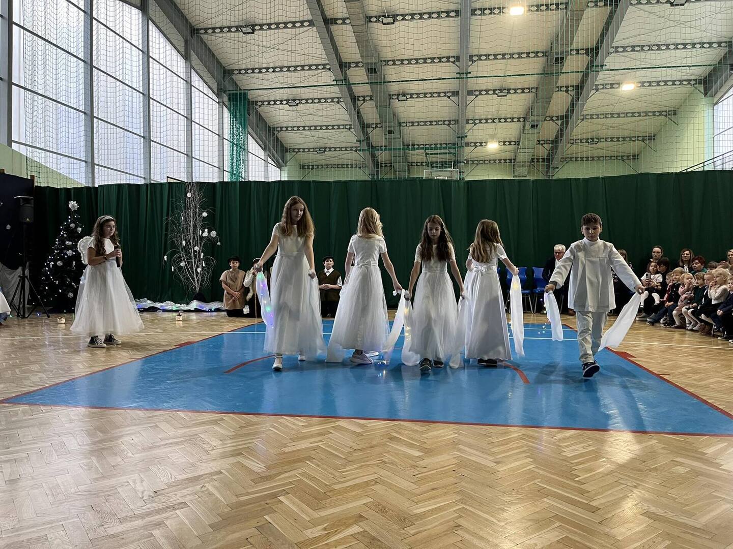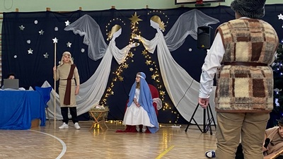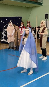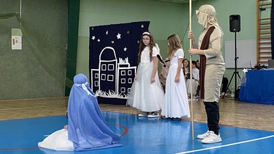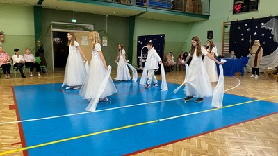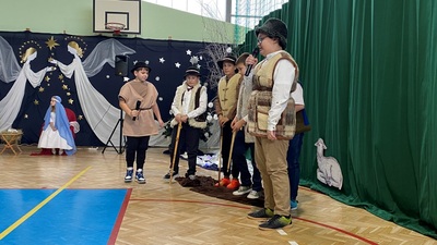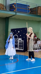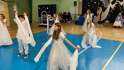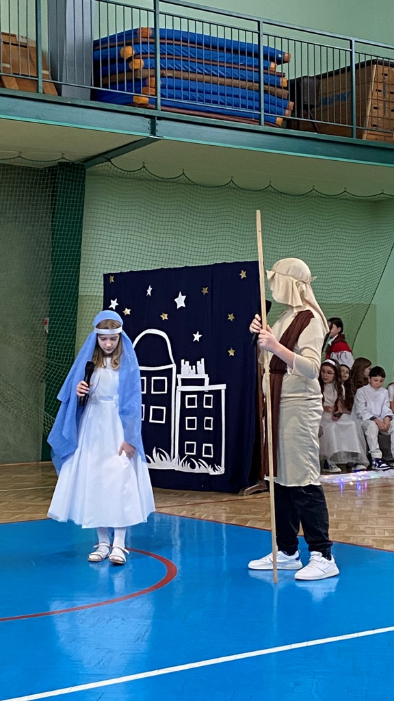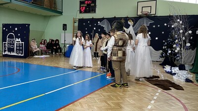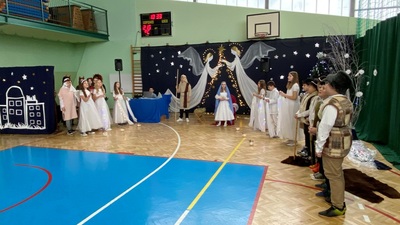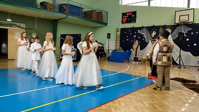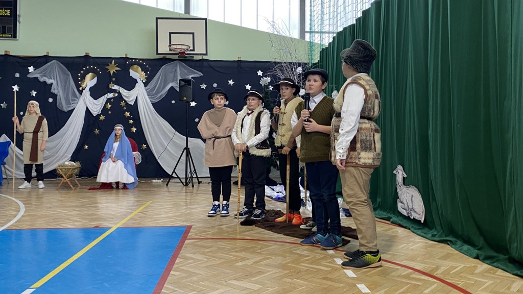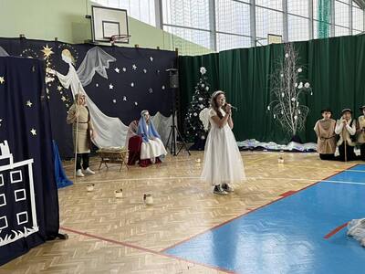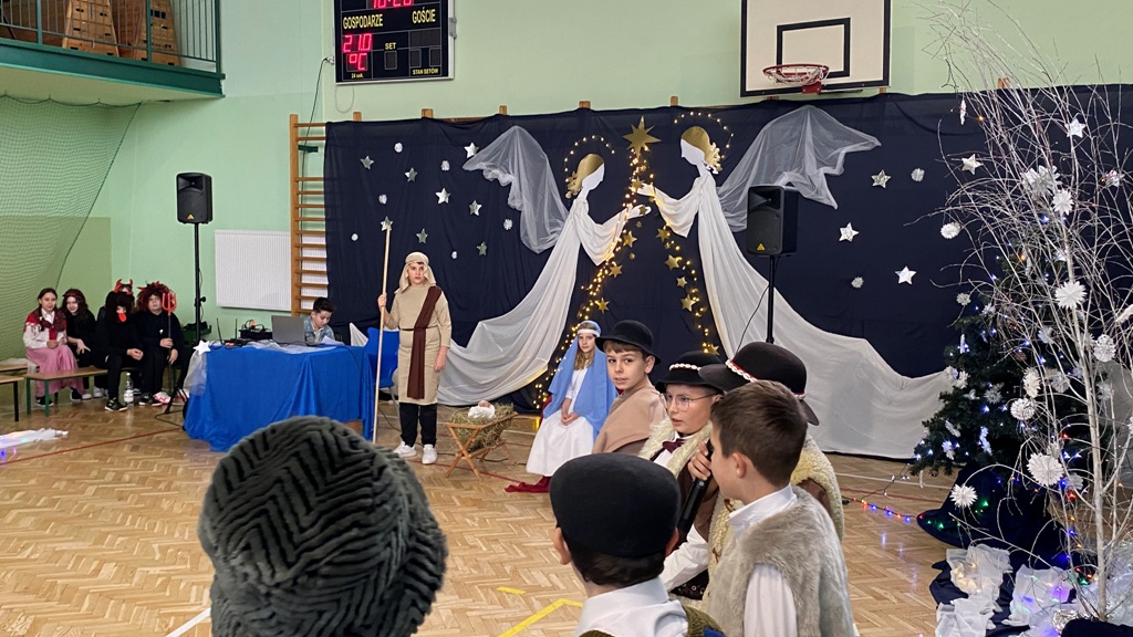 21 grudnia tuż przed Świętami Bożego Narodzenia, w naszej szkole odbyły się jasełka - widowisko o Bożym Narodzeniu, które od wieków wpisane jest w polską tradycję. Cała społeczność zebrała się w hali sportowej, aby zobaczyć przedstawienie przygotowane przez uczniów klasy 5. Wydarzenie to było pełne wzruszeń i emocji. Wyjątkową świąteczną atmosferę dzieci wyraziły poprzez swoją grę aktorską, wspaniałą charakteryzację, wzruszający taniec oraz kolędy i pastorałki. To wyjątkowe widowisko sprawiło, że wszyscy poczuli magię nadchodzących Świąt Bożego Narodzenia.