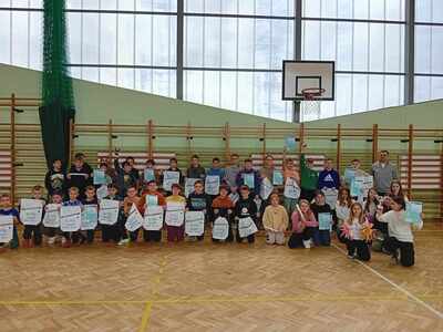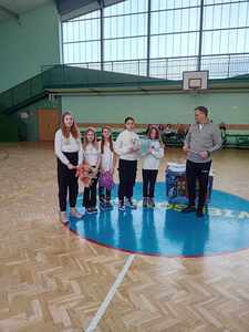 Wszystkim gratulujemy dobrej gry. Najlepsze drużyny otrzymały puchary i dyplomy, wszyscy uczniowie otrzymali nagrody rzeczowe. Po wręczeniu pucharów swój występ taneczny zaprezentowały dziewczęta z klasy 5.