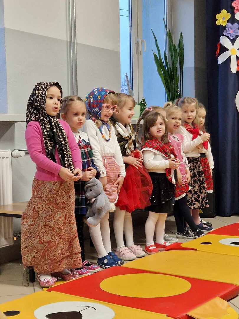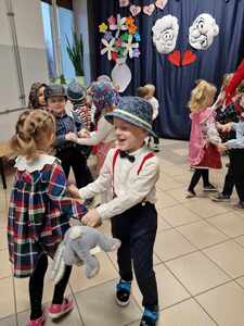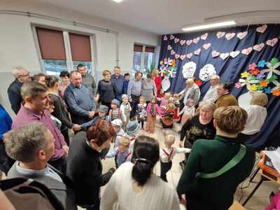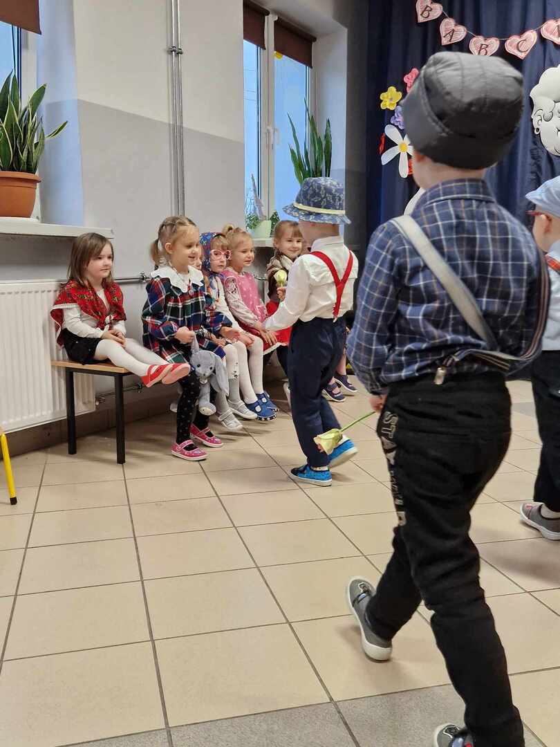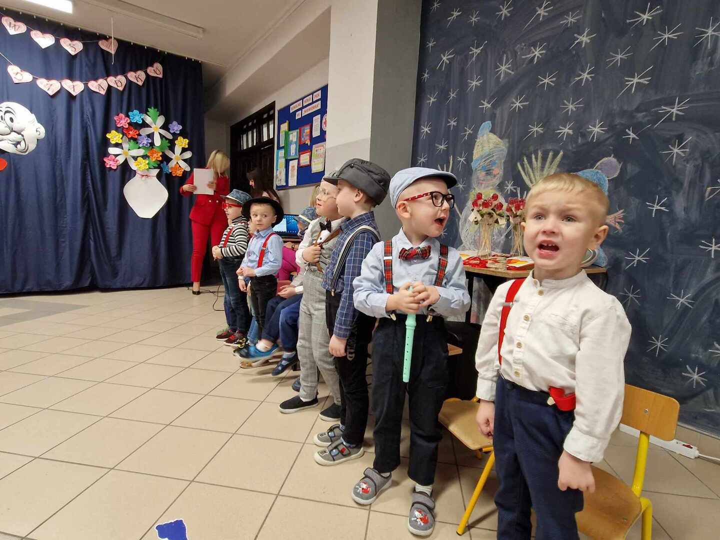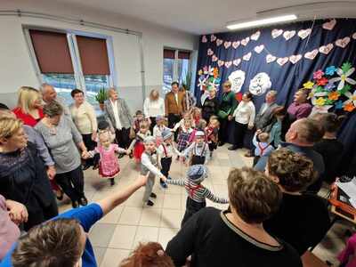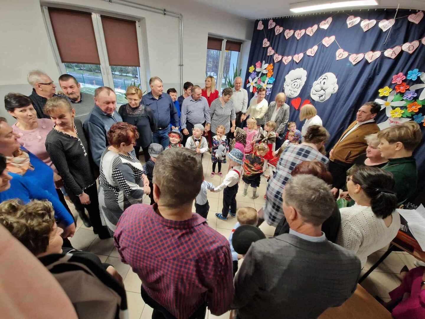23 stycznia 2024 r. uczniowie oddziału przedszkolnego z grupy 4-latków przygotowali program artystyczny z okazji Dnia Babci i Dziadka. Mali artyści z przejęciem wystąpili - chłopcy wcieli się w role dziadków ubrani w czerwone szelki i kapelusze, a dziewczynki zagrały babcie w chustach i czerwonych koralach. Goście ze wzruszeniem odbierali czułe słowa kierowane pod ich adresem, a duma rozpierała ich serca, że mają tak utalentowane wnuczęta. W czasie przedstawienia dzieci zaprosiły swoich dziadków do tańca przy nastrojowych piosenkach np. „Tyle słońca w całym mieście” czy „Odpływają kawiarenki” oraz do wspólnego śpiewu. Po oficjalnej części uroczystości, mali artyści złożyli serdeczne życzenia ukochanym babciom i dziadkom oraz wszyscy udali się na słodki poczęstunek.
