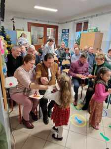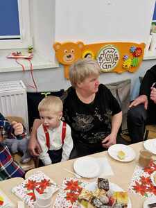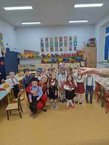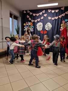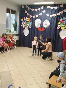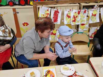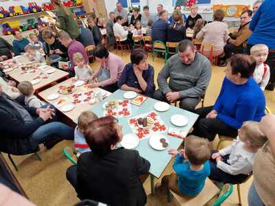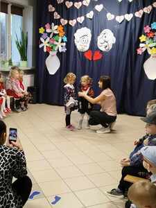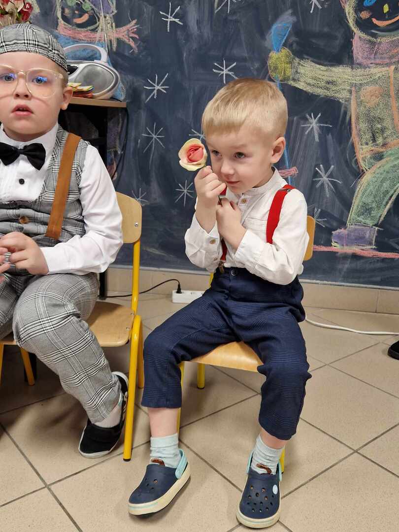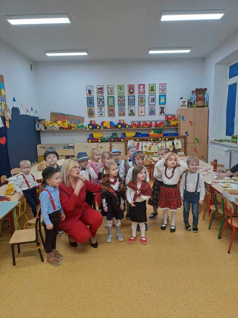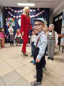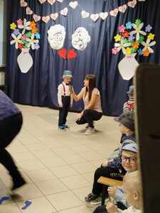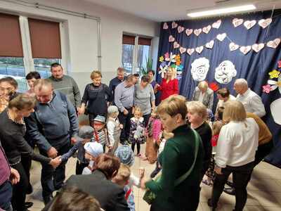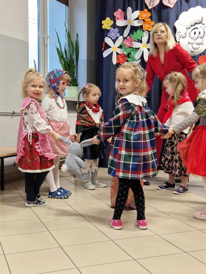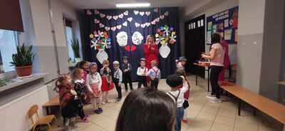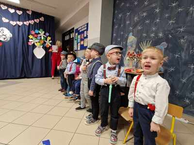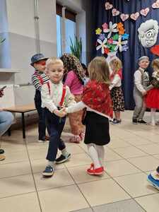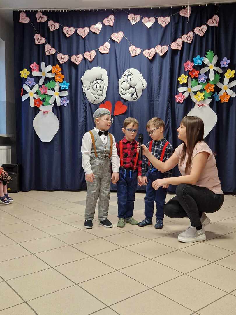 23 stycznia 2024 r. uczniowie oddziału przedszkolnego z grupy 4-latków przygotowali program artystyczny z okazji Dnia Babci i Dziadka. Mali artyści z przejęciem wystąpili - chłopcy wcieli się w role dziadków ubrani w czerwone szelki i kapelusze, a dziewczynki zagrały babcie w chustach i czerwonych koralach. Goście ze wzruszeniem odbierali czułe słowa kierowane pod ich adresem, a duma rozpierała ich serca, że mają tak utalentowane wnuczęta. W czasie przedstawienia dzieci zaprosiły swoich dziadków do tańca przy nastrojowych piosenkach np. „Tyle słońca w całym mieście” czy „Odpływają kawiarenki” oraz do wspólnego śpiewu. Po oficjalnej części uroczystości, mali artyści złożyli serdeczne życzenia ukochanym babciom i dziadkom oraz wszyscy udali się na słodki poczęstunek.