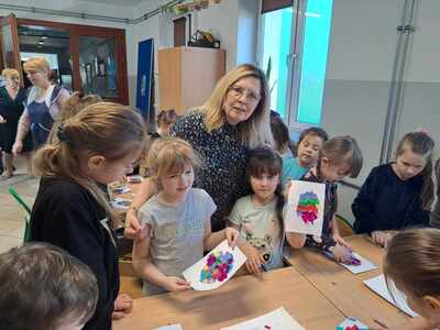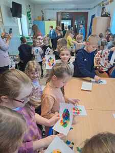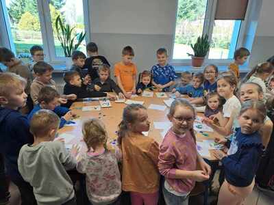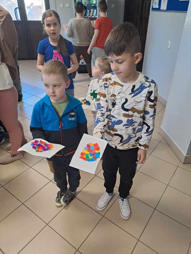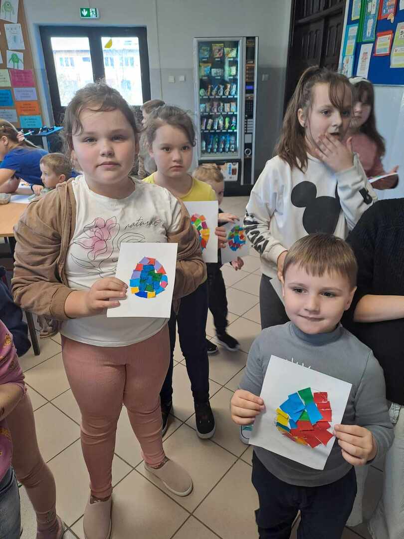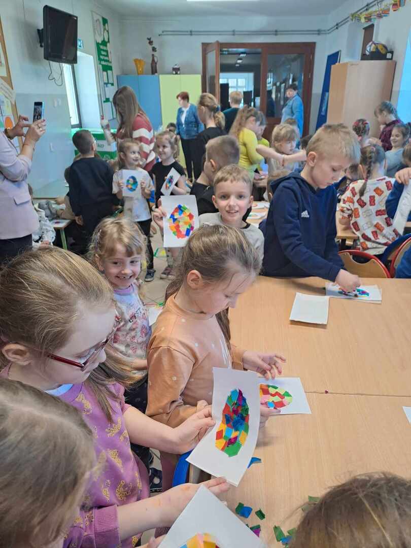W dniu 26 marca w naszej szkole odbyły się warsztaty artystyczne zorganizowane z okazji zbliżających się Świąt Wielkanocnych. W trakcie warsztatów dzieci miały możliwość ozdobić pisankę techniką płaskiego origami. W duchu rywalizacji powstawały przepiękne, kolorowe prace, można było również zauważyć wzajemną pomoc i współpracę. Przedszkolaki i uczniowie klas I-III wykazali się dużym zaangażowaniem, aktywnością oraz zapałem w przygotowywaniu ozdób wielkanocnych. W nagrodę za udział w zajęciach każde dziecko otrzymało słodką niespodziankę w postaci ciasteczka w kształcie jajka. Zajęcia warsztatowe poprzez zabawę pozwalają rozwijać inwencję twórczą, wzbudzać ciekawość i kreatywne myślenie.