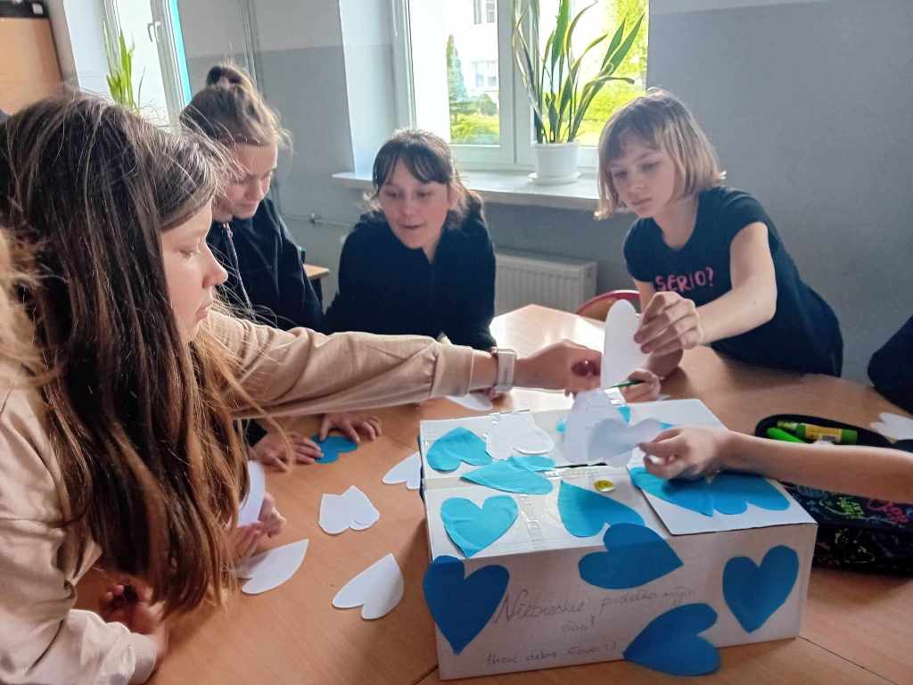 - środa - oddziały przedszkolne oraz klasy I-III spotkanie z psycholog panią Martą Niemczyk-Ryszką- rozmowa na temat autyzmu, klasy IV – VII - „Niebieska przerwa”;