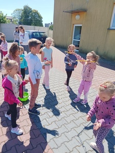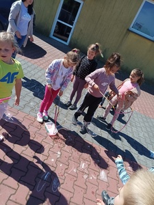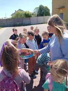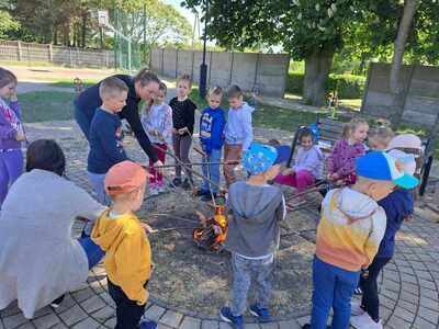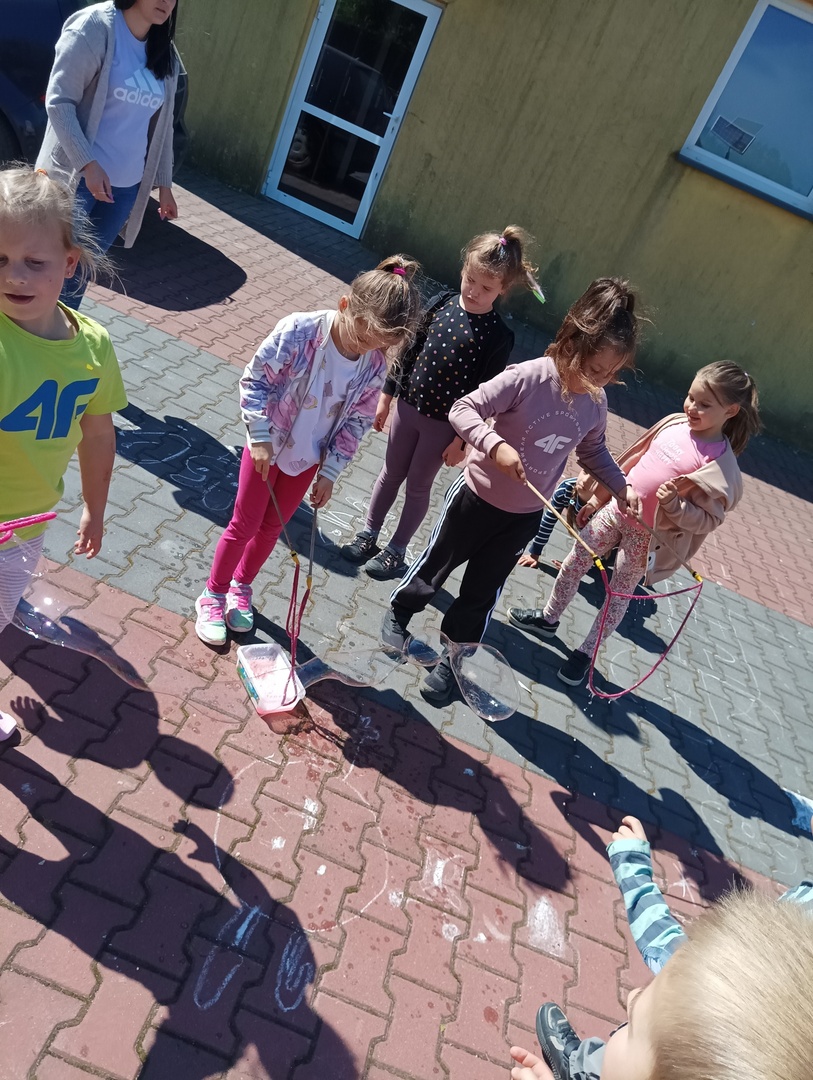 Na koniec dzieci udały się z paniami z GOKiS na plac zabaw, gdzie zostały zorganizowane dla nich zabawy na świeżym powietrzu, puszczanie baniek, konkursy i konkurencje sportowe. Nie obyło się również bez pieczenia kiełbasek na ognisku. Dzieci zadowolone i uśmiechnięte wróciły do szkoły. Dzisiejsza lekcja historii zostanie w pamięci wszystkich na bardzo długo.