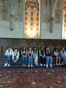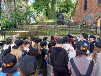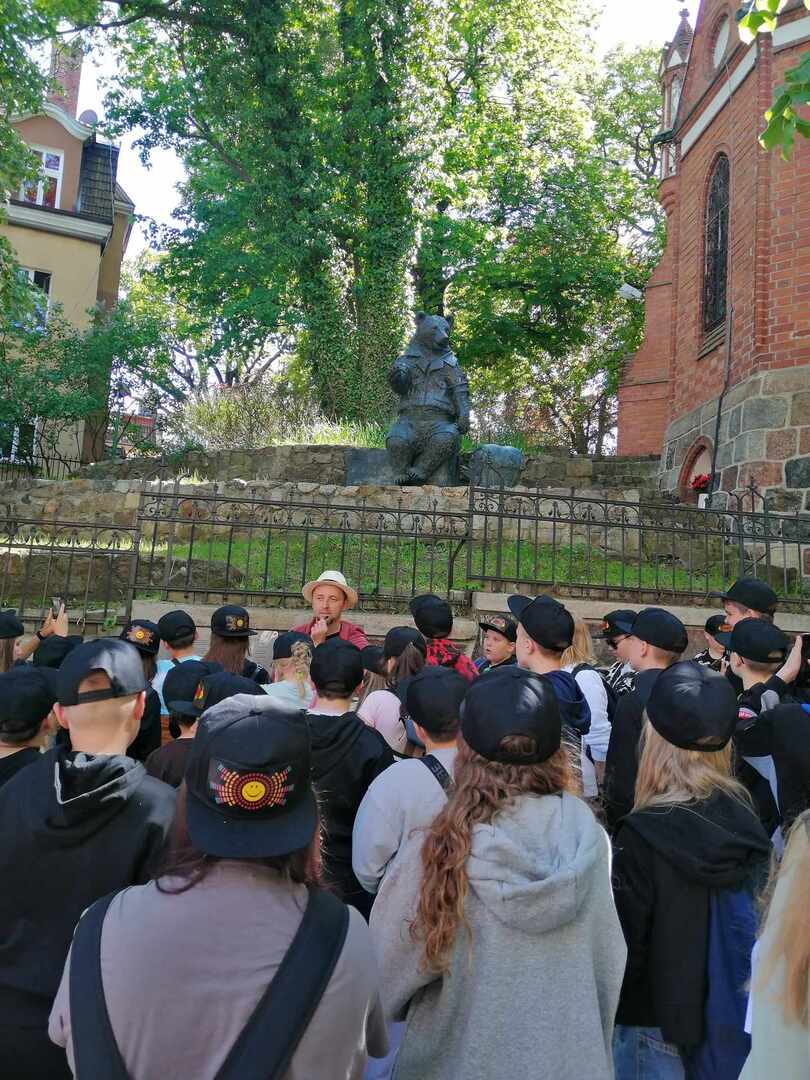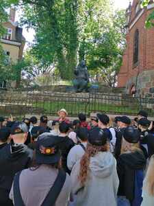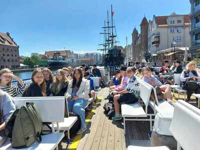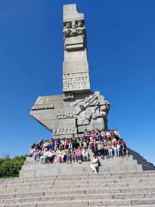 Następnie wraz z przewodnikiem przespacerowaliśmy się w kierunku portu, gdzie już czekał na nas statek, którym popłynęliśmy na Westerplatte. Po zejściu na ląd pani przewodnik przeprowadziła nas po polu bitwy w obronie Westerplatte z września 1939 roku. Widzieliśmy szczątki murów obronnych, symboliczny cmentarz bohaterów oraz weszliśmy na Pomnik Obrońców Wybrzeża. Dalszy ciąg zwiedzania Gdańska to: Droga Królewska- ulica Długa, Ratusz Miejski, Długi Targ, Fontanna Neptuna, Dwór Artusa, Długie Pobrzeże z Żurawiem, ulica Mariacka z Kościołem Mariackim. Dzień był pełen wrażeń.
