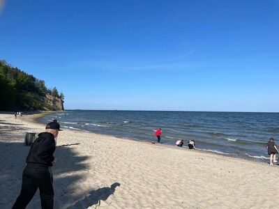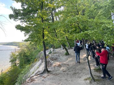 Przeszliśmy słynnym Mońciakiem, czyli ulicą Bohaterów Monte Cassino, przy której stoi niezwykły Krzywy Domek. Inne ciekawe obiekty miasta to Zakład Balneologiczny, Park Południowy oraz Łazienki Południowe - związane z uzdrowiskowym charakterem Sopotu. Największe wrażenie zrobiło jednak na nas półkilometrowe Sopockie Molo- najdłuższe nad Morzem Bałtyckim. Kolejnym punktem programu było zwiedzanie Gdyni, spacer nabrzeżem, przy którym cumuje okręt wojenny ORP Błyskawica oraz statek Dar Pomorza. Dreszczyku emocji przysporzyło zwiedzanie Klifu Orłowskiego. Jest to urwiste nabrzeże, które sięga około 40 metrów wysokości. Rozlega się z niego piękna panorama Gdyni. Po zejściu z klifu na plażę nastąpiło powitanie z morzem, spacer, szukanie muszelek.
