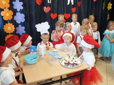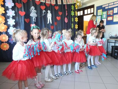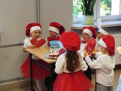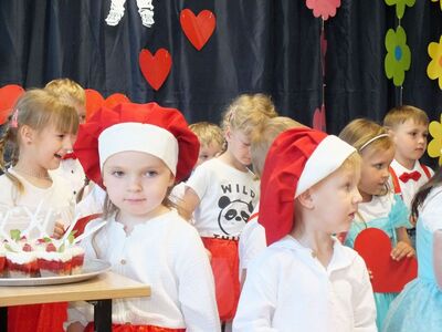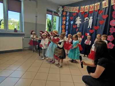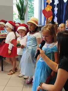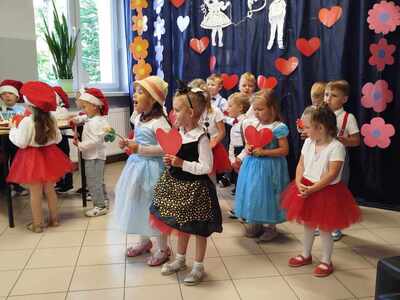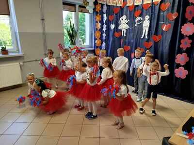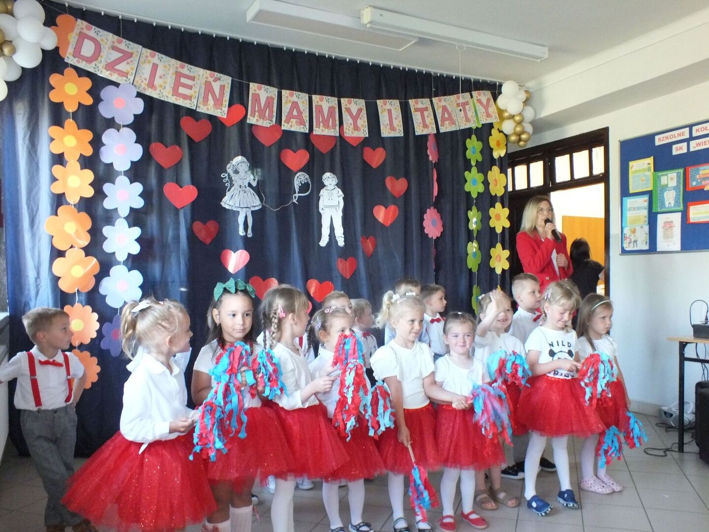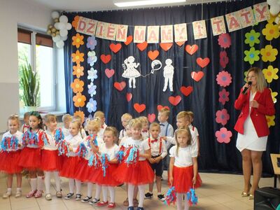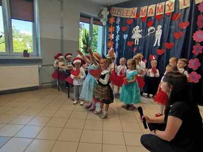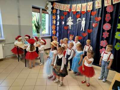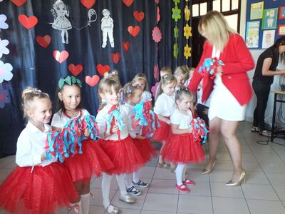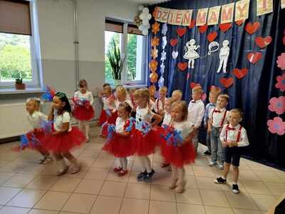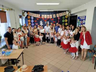 „Kochana Mamo powiem Ci na uszko, że bardzo Cię kocha to moje serduszko”. Słowa te były myślą przewodnią uroczystości, która odbyła się 22 maja 2024 r. w naszej szkole. Wtedy to przedszkolaki zaprosiły swoich rodziców, a by wspólnie świętować Dzień Mamy i Taty. Dzień ten jest ważny dla każdego człowieka , również dla dzieci, które dołożyły wszelkich starań, aby stał się on wyjątkowy i szczególny. Dzieci przedstawiły swoim rodzicom inscenizację związaną tematycznie z obchodzonym świętem. Przedszkolaki zaprezentowały się w formie tanecznej, poprzez śpiew i recytację wierszy. Dzieci przygotowały dla Mam laurki, świeczniki z kolorową solą oraz róże, natomiast dla Tatusiów były dyplomy „Supertata”. Cała uroczystość przebiegała w przemiłej atmosferze, a u niejednego rodzica pojawiła się łza wzruszenia. Myślę, że ten dzień pozostanie w pamięci na bardzo długo. Dziękujemy za obecność panu dyrektorowi Leszkowi Wróblewskiemu oraz pani wicedyrektor Joannie Rembielak. Szczególne podziękowania składamy dla mam, które przygotowały wspaniały poczęstunek oraz przyczyniły się do tak pięknej oprawy tego cudownego dnia, tj. Katarzyna Przybyła, Marta Przybyła, Katarzyna Gaik, Katarzyna Nowak, Katarzyna Arkit, Monika Centkowska, Wioletta Moryń-Koper oraz Anna Kałuzińska.
