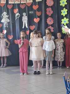 Przedszkolaki wierszem, tańcem i piosenką przekazały swoim rodzicom najpiękniejsze życzenia z okazji ich święta. Było pięknie, energicznie, ale też wzruszająco. Występ wzbudził niesamowite emocje. Po zakończeniu części artystycznej, dzieci wręczyły mamusiom i tatusiom własnoręcznie przygotowane laurki i upominki. Następnie wszyscy zostali zaproszeni na słodki poczęstunek.
