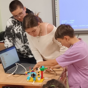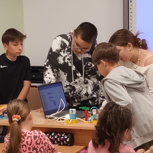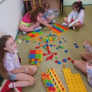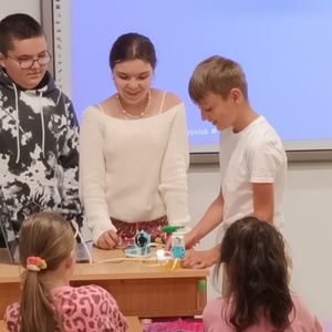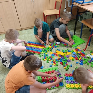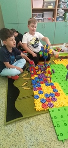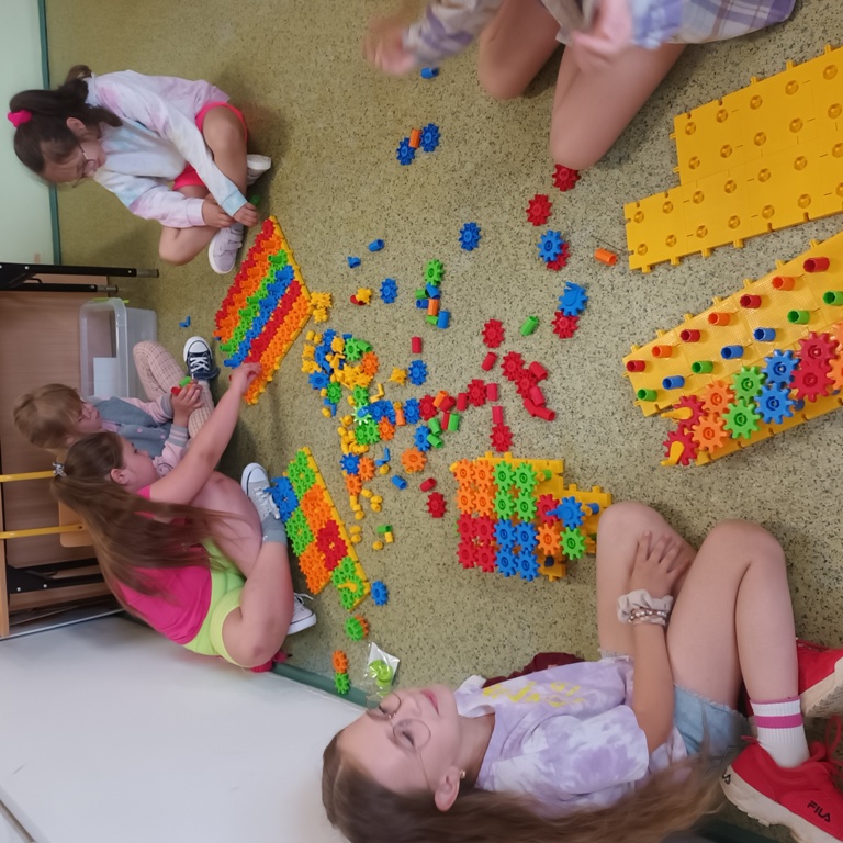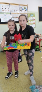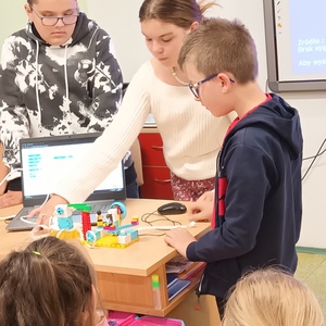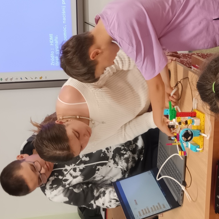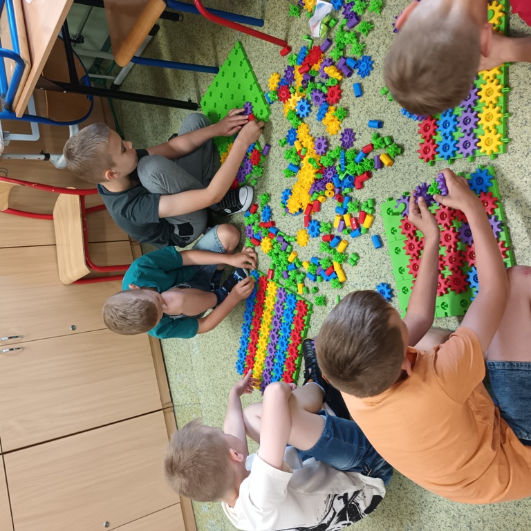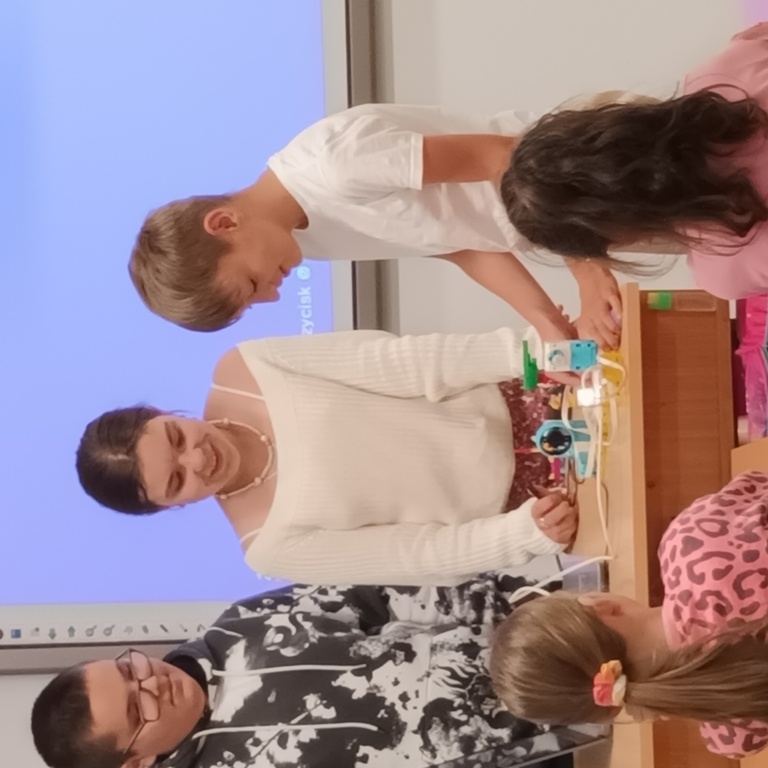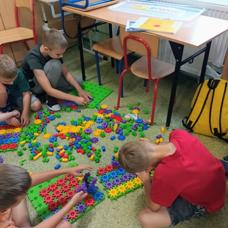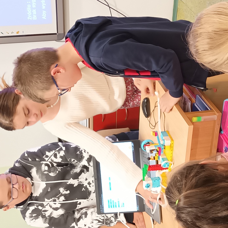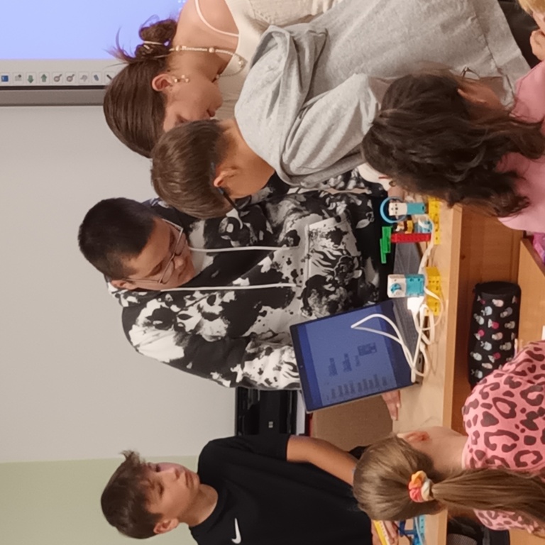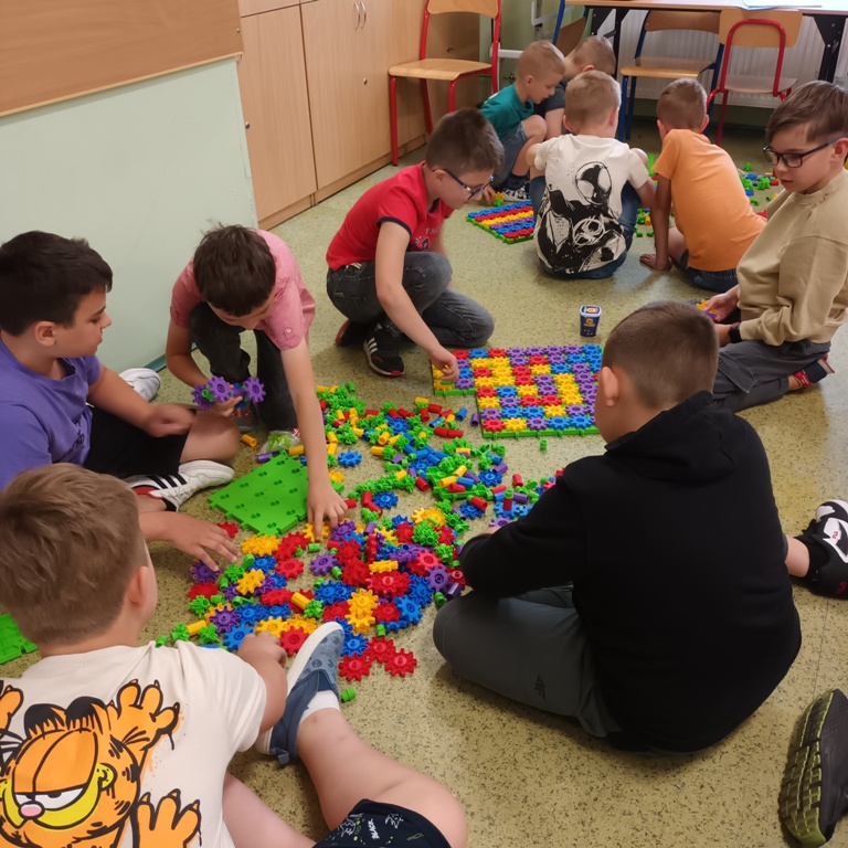 Uczniowie klasy 2 i 3, mieli możliwość skorzystania z jednego z zestawów Laboratorium Przyszłości – klocków Korbo EDU CODE 420 -, którego głównym celem jest zapoznanie najmłodszych z podstawowymi zasadami kodowania. Zaznajamia ich także z takimi pojęciami, jak sekwencja, funkcja, analiza danych. Uczniowie pracowali w grupach kształtując umiejętności komunikacji i współpracy podczas nauki programowania, które wykorzystuje fizyczne lub wirtualne elementy do tworzenia kodu. W edukacji dzieci, łączy zabawę z nauką logicznego myślenia i podstawowego nauczania. Przez manipulację klockami i ich składnikami widać natychmiastowy rezultat działań, co oznacza wsparcie i pomoc w procesie nauki. Uczniowie poznali podstawowe pojęcia dotyczące kodowania. Uczestniczyli również w warsztatach „Laboratoria Przyszłości – roboty edukacyjne”, prowadzonych przez kolegów z klasy 5.