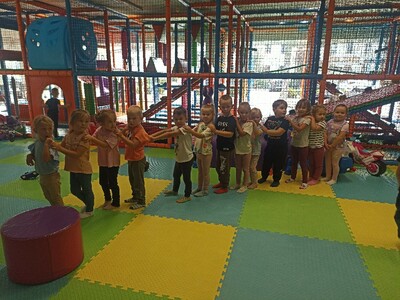Z okazji Dnia Przedszkolaka grupa 4-latków wyjechała na wycieczkę do Przedborza, aby spędzić aktywnie dzień korzystając z urządzeń, sprzętów i zabawek znajdujących się w sali zabaw „Figloraj”. Możliwość świętowania w tak kolorowym i atrakcyjnym dla dzieci miejscu była powodem ich ogromnej radości. Pobyt tam był okazją do wzajemnej integracji, rozwijania sprawności motorycznych dzieci. Uczył także współpracy i współdziałania oraz wzajemnej troski o swoje bezpieczeństwo i pozostałych uczestników zabawy.