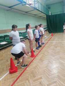 Zajęcia sportowe dla uczniów z klas I-III poprowadził pan Robert Aleksandrowicz, który zapoznał najmłodszych uczniów z zasadami bezpieczeństwa. Dzieci podczas tych spotkań uczyły się bezpiecznej jazdy na rowerze. Zajęcia dla starszych uczniów poprowadziła pani Małgorzata Dyktyńska. Podczas tych spotkań uczniowie poznali wiele sposobów aktywnego spędzania czasu wolnego oraz nauczyli się koleżeńskiej rywalizacji sportowej. Przedszkolaki, brały udział w ćwiczeniach sportowych mających formę zabawy wykorzystując chustę animacyjną oraz bawiły się w znane zabawy muzyczno-ruchowe.