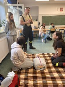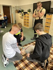 Wszystko obyło się po instruktażu strażaków – ratowników KSGR OSP w Wielgomłynach, którzy bardzo chętnie odpowiedzieli na nasze zaproszenie do działu w tych zajęciach. Zajęcia dały uczniom bardzo ważną i przydatną w życiu wiedzę, a jednocześnie uświadomiły, że w razie potrzeby każdy może być ratownikiem, w miarę swoich możliwości.
