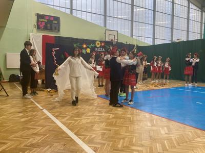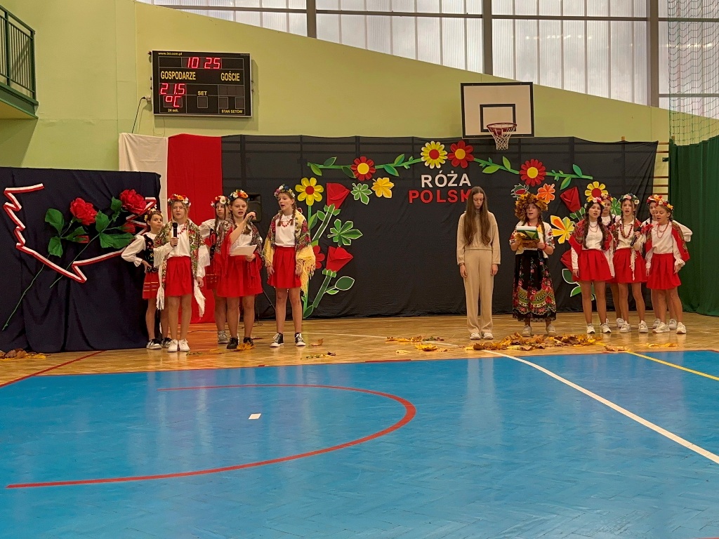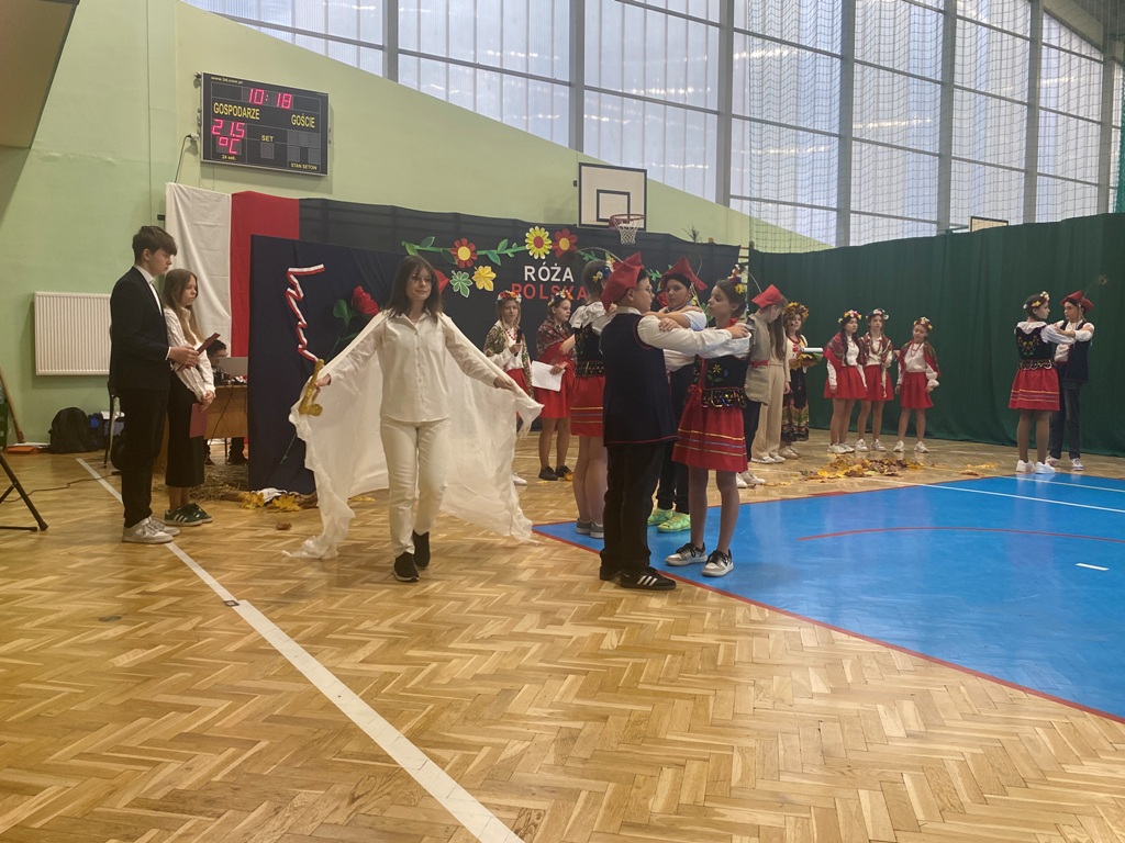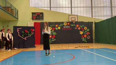 Montaż słowno-muzycznym pt. „Róża Polska” inspirowany dramatem Stanisława Wyspiańskiego pt. ,,Wesele’’ miał na celu uświadomić wszystkim najważniejsze wartości dla każdego Polaka – wolność, niepodległość, suwerenność i patriotyzm. Zebrana publiczność w skupieniu wysłuchała występu uczniów, nagradzając go na zakończenie gromkimi brawami.
