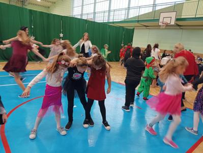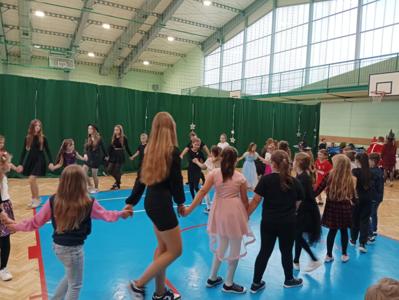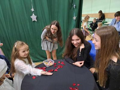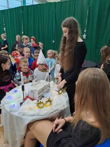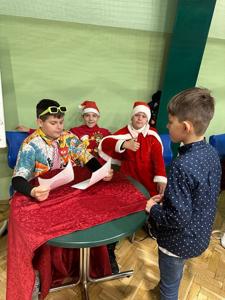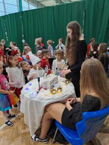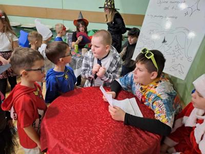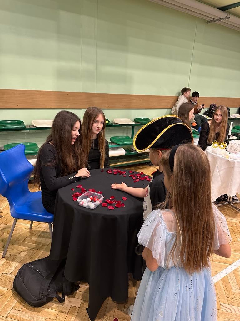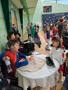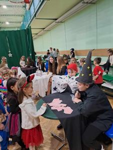 Na uczniów czekało, prócz zabaw przy muzyce i tańców zorganizowanych przez uczniów klasy 8 w pięknie przystrojonej hali gimnastycznej, wiele atrakcji. Można było w bufecie prowadzonym przez uczniów klasy 6 kupić pyszne ciasto, babeczki, przekąski i napoje. Uczniowie klas 5 i 7 przygotowali dla uczestników zabawy liczne wróżby, dzięki którym mogli oni sprawdzić, np. jaki zawód będą wykonywać w przyszłości albo jakie imię będzie nosiła przyszła wybranka lub wybranek ich serca.
