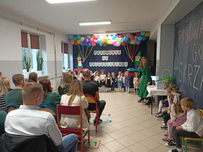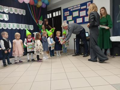 Uroczystość rozpoczęła się od powitania gości i przedstawienia krótkiej części artystycznej, w której dzieci zaprezentowały swoje umiejętności – dając tym samym dowód, jak dużo już potrafią. Maluszki wykazały się talentem, odwagą oraz kreatywnością. Śpiewy, tańce i wiersze w ich wykonaniu przyciągnęły uwagę wszystkich obecnych, a na ich twarzach można było dostrzec ogromną radość i dumę.