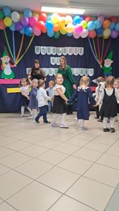 Skrzaty już jako przedszkolaki w zielonych czapeczkach wysłuchały także powitania w formie piosenki i życzeń, przygotowanego przez grupę starszaków, za co serdecznie dziękujemy.