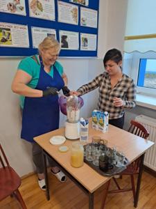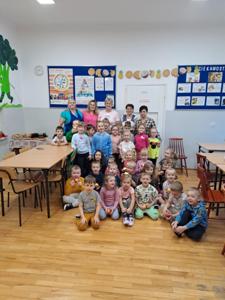 W ramach edukacji prozdrowotnej odbyło spotkanie z panią intendent Anną Łysiak oraz z paniami z obsługi: szefową kuchni Ewą Łuszcz, Bogumiłą Bąk oraz Bożeną Kopeć.