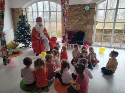 Na samym początku przedszkolaki udały się na spotkanie ze Św. Mikołajem, który powitał je z wielka radością, zaprosił do wspólnej zabawy w kole, a następnie wręczył prezenty. Po tymże niezwykłym spotkaniu Skrzaty z uśmiechami na twarzy korzystały z licznych atrakcji w sali zabaw, m. in. z basenu z kulkami, tuneli czy zjeżdżalni.