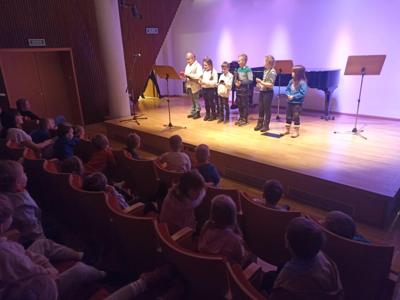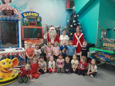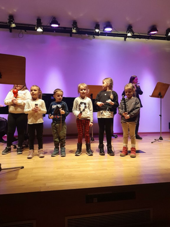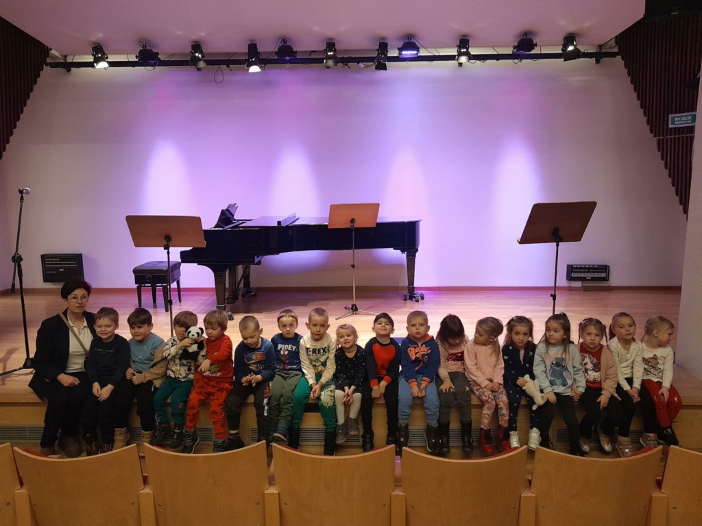 Grudzień to szczególny czas dla dzieci, w którym obdarowywani są licznymi prezentami oraz spotyka ich wiele miłych niespodzianek .i atrakcji. Takim bardzo miłym i wyjątkowym prezentem dla dzieci z grupy 4-latków oraz kl. 0A był wyjazd do Filharmonii Częstochowskiej , pobyt w sali zabaw Hula- Kula w Rędzinach, a tam spotkanie z Mikołajem. Pobyt w filharmonii był „wspaniałą ucztą muzyczną”, podczas której przedszkolaki wysłuchały utworów związanych z obchodami Świąt Bożego Narodzenia w wykonaniu muzyków orkiestry symfonicznej. Spotkanie dostosowane było do możliwości percepcyjnych „małych słuchaczy”. Umożliwiło poznanie i usłyszenie instrumentów wchodzących w skład orkiestry symfonicznej. Dzieci zostały również zaproszone na scenę, aby towarzyszyć muzykom w ich grze na instrumentach muzycznych.. Możliwość aktywnego słuchania muzyki było źródłem przeżyć estetycznych, służących rozwijaniu ich wrażliwości oraz zainteresowań muzycznych.