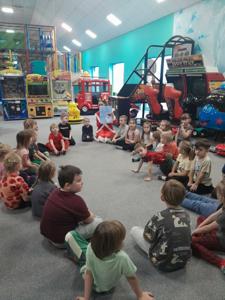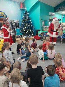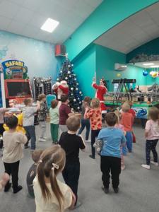 Kolejnym punktem wycieczki był pobyt w sali zabaw w Rędzinach. Czas tam spędzony przepełniony został mnóstwem atrakcji. Wspólne zabawy z Mikołajem i jego Pomocnikiem ,prezenty, liczne wyzwania i zadania do wykonania oraz smakołyki czekające na dzieci bardzo ich ucieszyły.