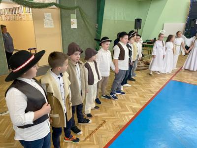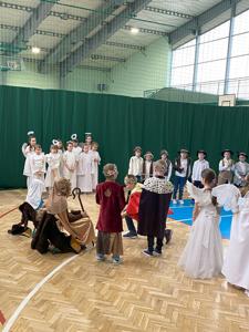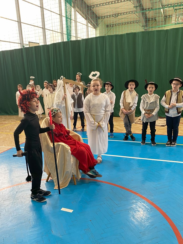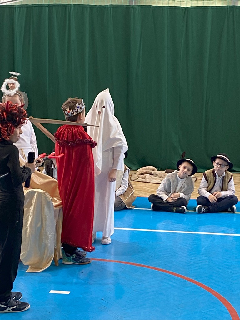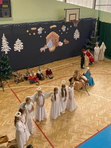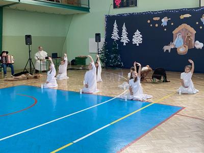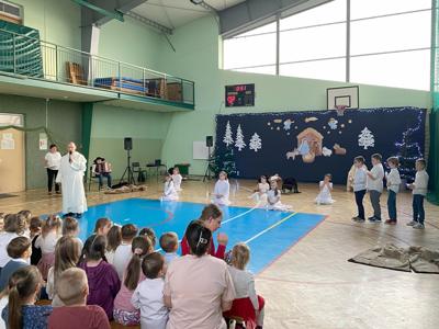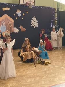 Uczniów do przedstawienia przygotowały Panie: Barbara Szymczyk, Renata Nitecka, Ewa Bedlechowicz oraz Ojciec Maciej Atras. Piękna dekoracja była również ich autorstwa.