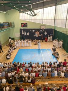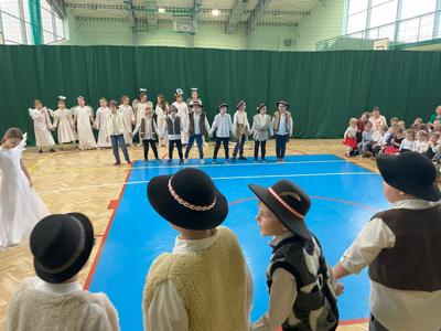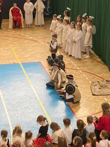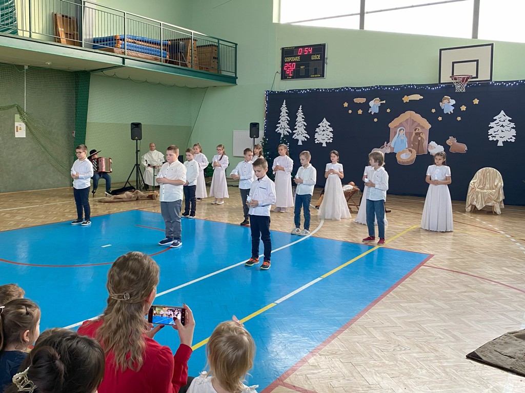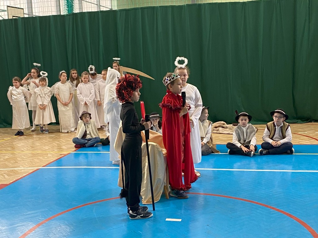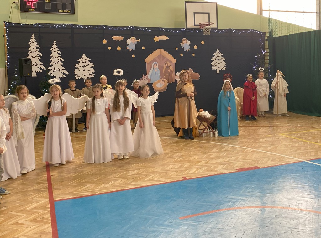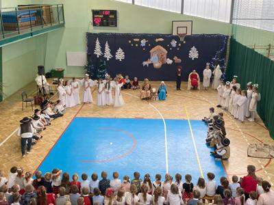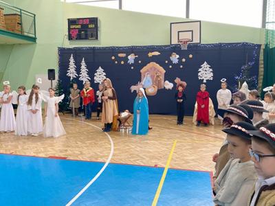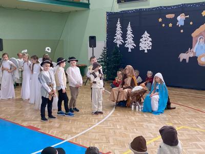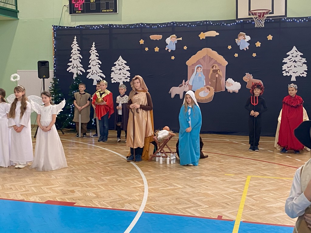 W dniu 19 grudnia 2024 r. w Hali Sportowej w Wielgomłynach odbyło się jasełkowe spotkanie ogólnoszkolne. W śwąteczny nastrój wprowadzili nas uczniowie klas IIa, IIb i klasy III. Młodzi artyści z dużym zaangażowaniem przedstawili nam historię narodzenia Jezusa Chrystusa. Usłyszeliśmy też kilka kolęd i pastorałek, a te bardziej znane występujące dzieci wykonały razem z publicznością, która na koniec gromkimi brawami na stojąco podziękowała im za wspaniały występ.
